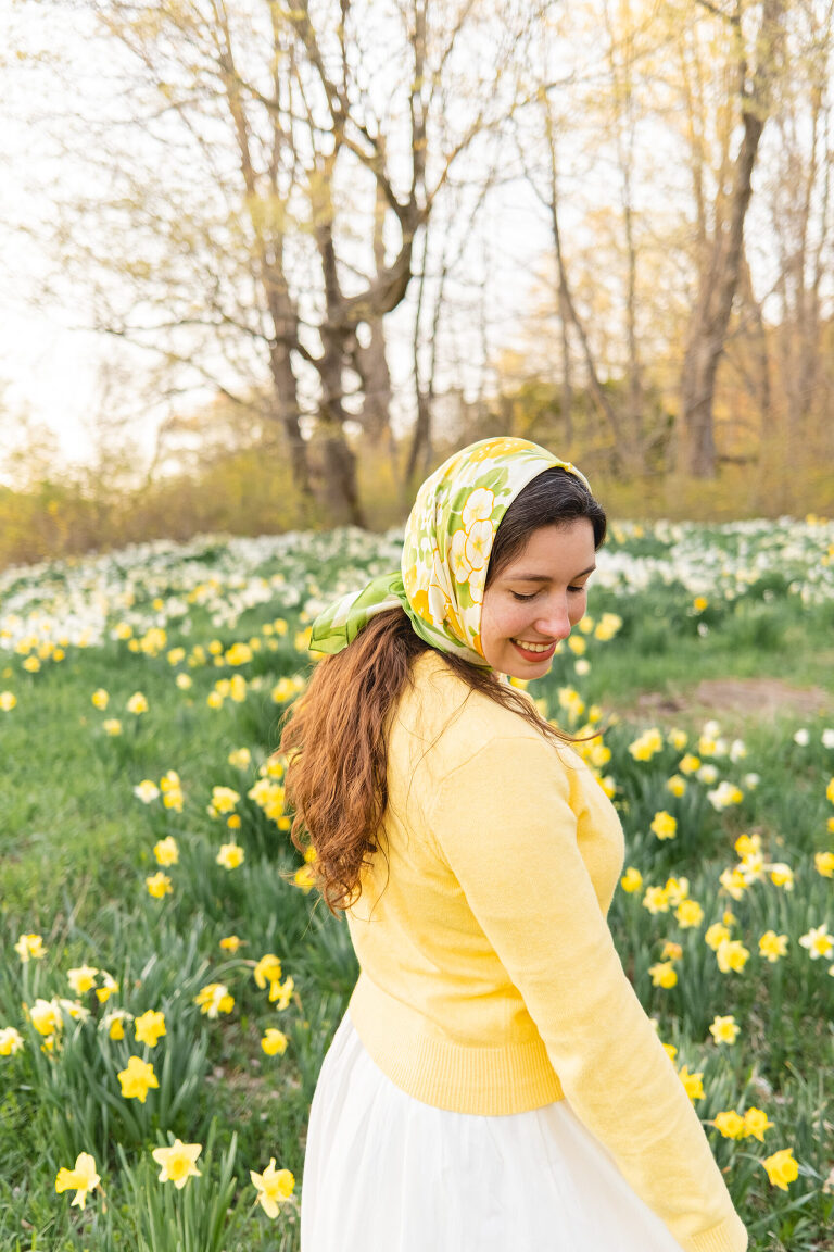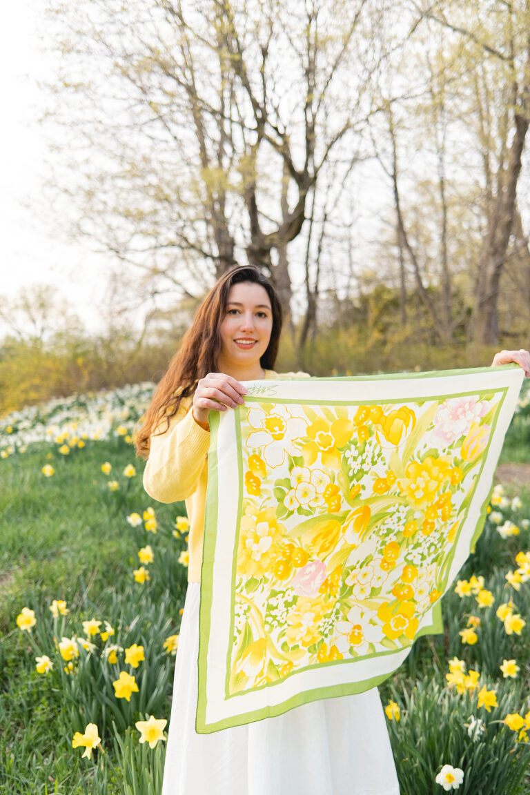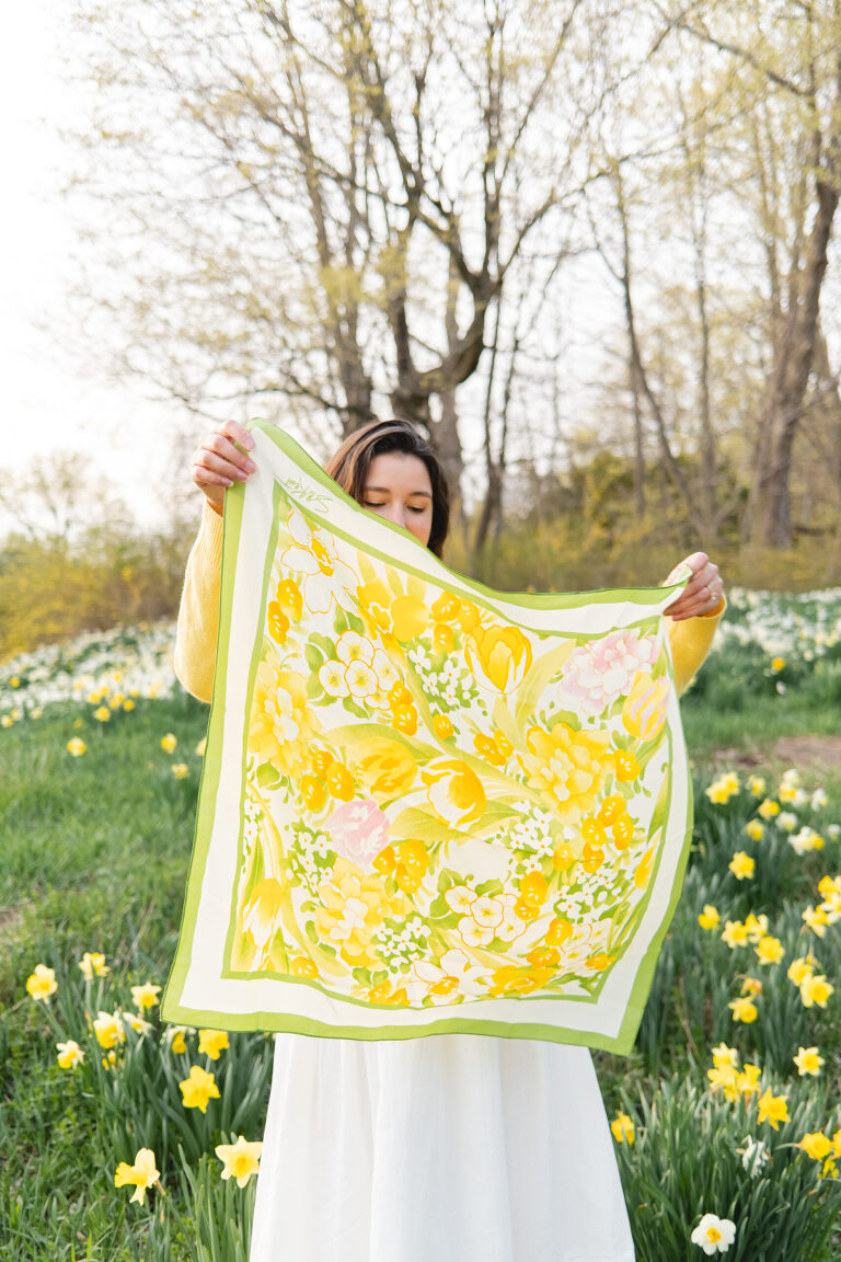 This spring I thrifted this lovely yellow and green floral rain scarf: