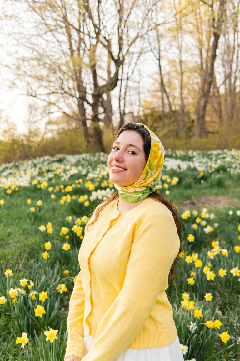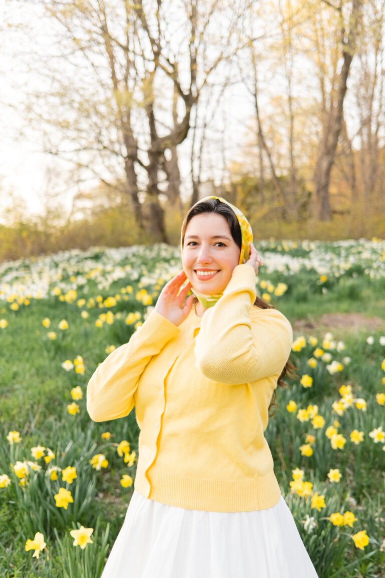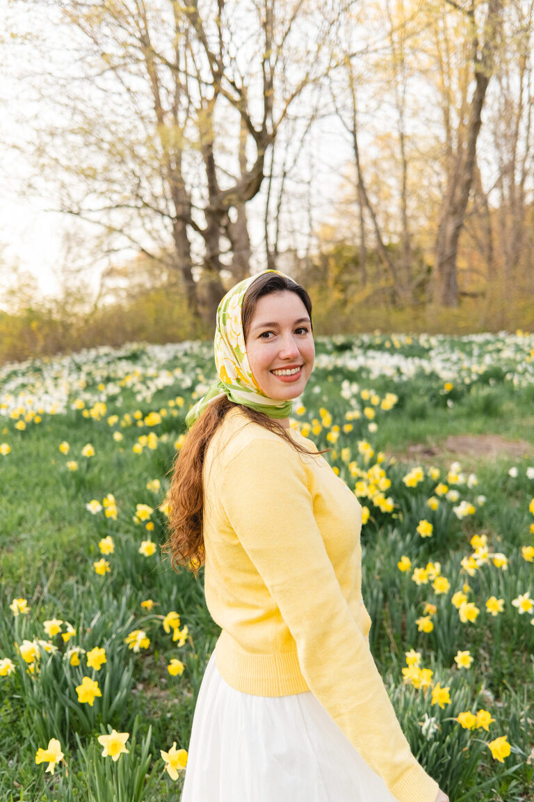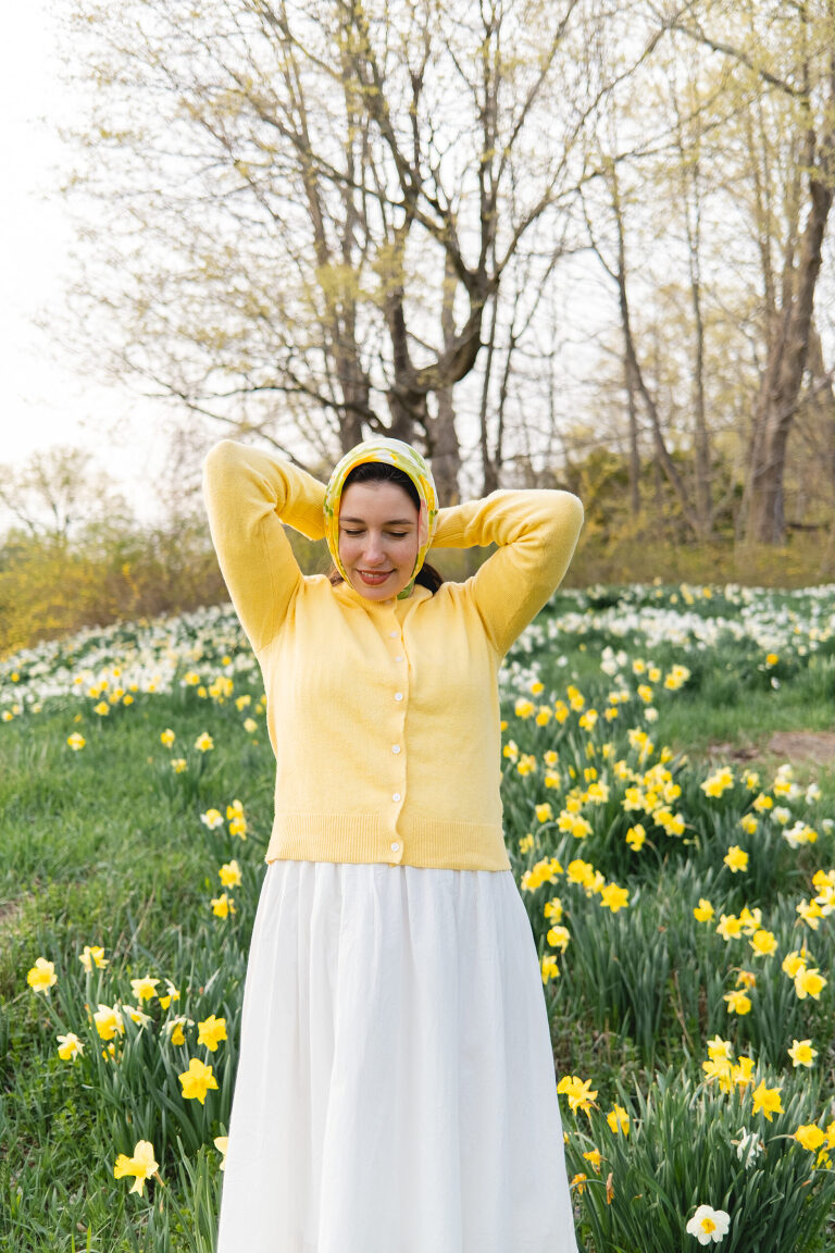 The only difference here is that my hair is very long. I could tuck it under the scarf to protect it, but women in the 1950s and 1960s typically had very short hair so the hair scarf was long enough to protect their hairdo.
