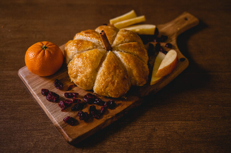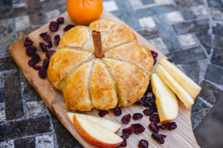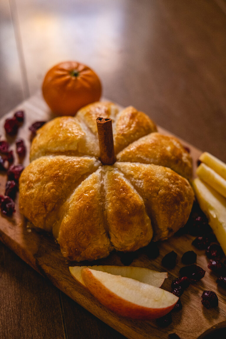 The other weekend I went to a family picnic. Most of the main entrees were already chosen for the pot luck style gathering, so I decided to bring along an appetizer instead. I wanted something simple, but a crowd pleaser. I usually bring along a cheese board because they are easy to make and typically a favorite. I love filling these boards with everyone’s favorite meats, cheeses, spreads, fruits, and crackers. And with it being autumn I also wanted to fit the theme. I have seen a lot of pumpkin baked bries on my Instagram feed this season and thought it was about time I tried one out for myself.