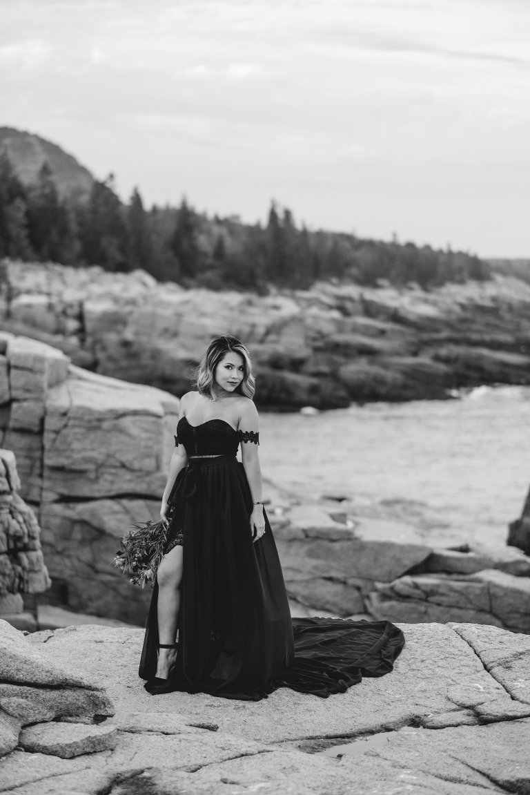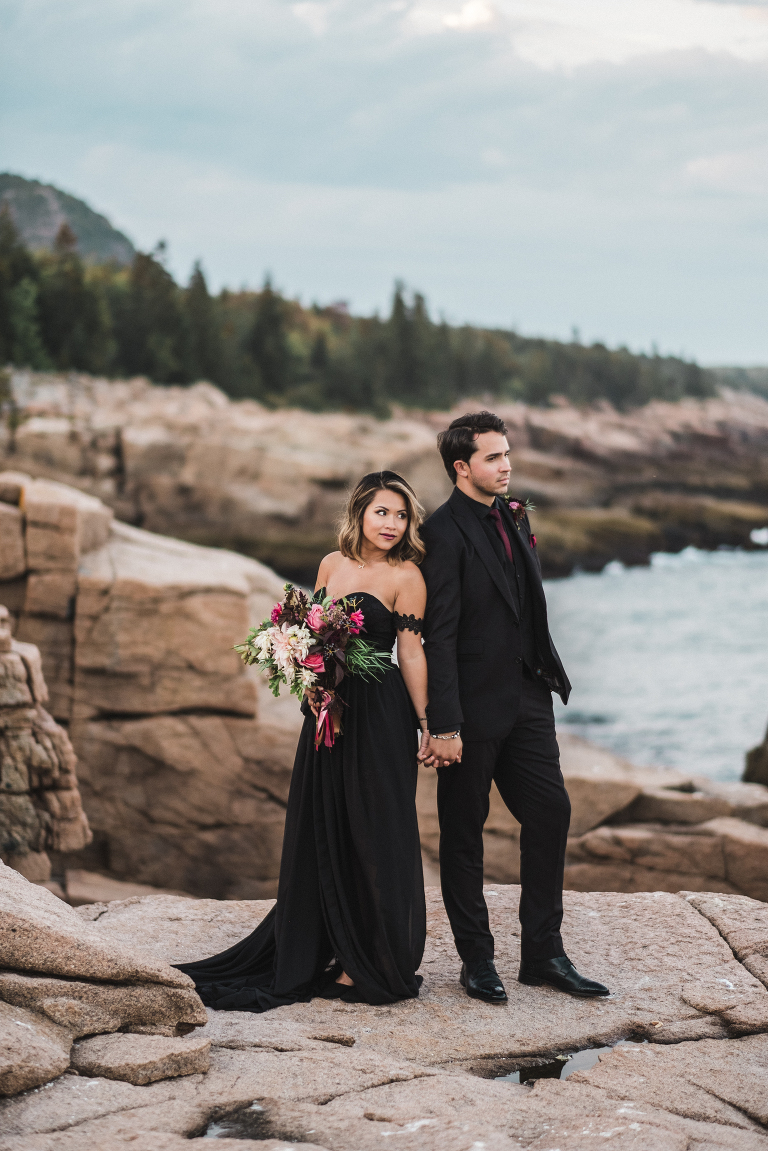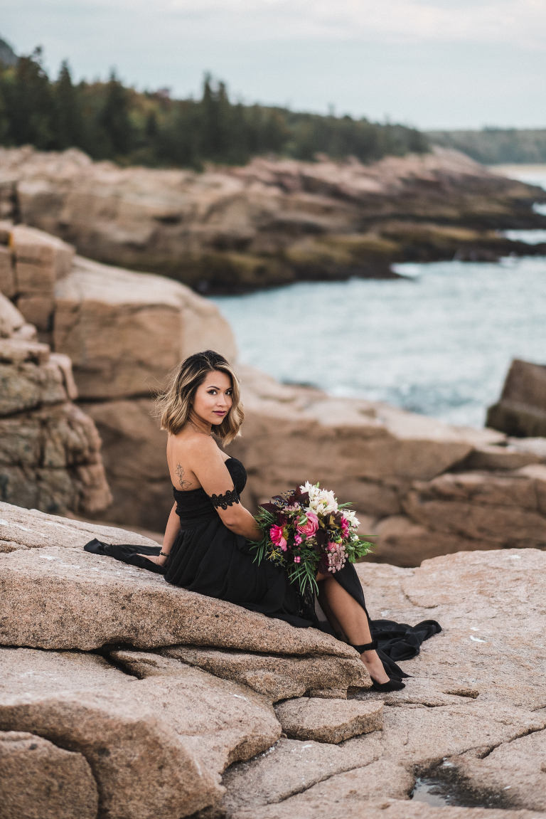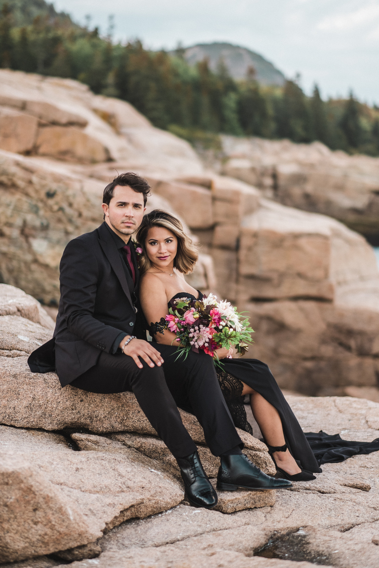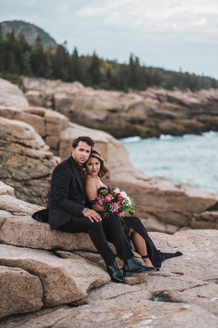 About seven years ago I dreamed up an adventurous wedding styled photo shoot in a spiral bound notebook that took place in Acadia National Park. I pictured rocky cliffs at sunset, gorgeous mountain views, and a couple that had magnificent chemistry. A few weeks ago I was able to turn that vision into a reality and it turned out so much more than I could have imagined. Truc and Mike are a beautiful couple and their confidence in front of the camera and their love for one another was a true gift to photograph. Without them and their determination to join me (a complete stranger to them) nearly eight hours north of home to work in Acadia National Park in Maine, then this photo shoot would never have happened. I am very grateful for their belief in my work and their excitement to make this photo shoot a reality! I am also incredibly thankful for my husband, Matthew, who joined me on this trip and was absolutely essential to making everything come out the way it did. He is a true visionary and I am looking forward to teaming up with him for a wedding next summer in Tuscany.