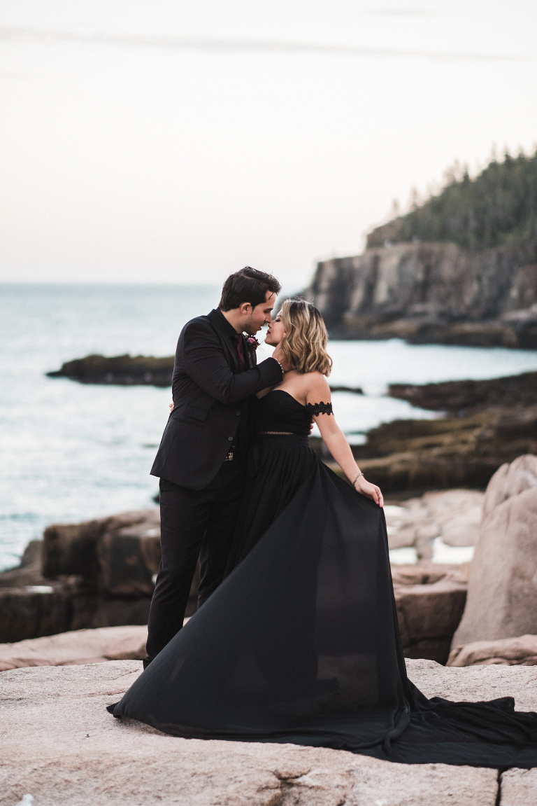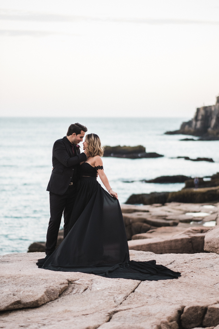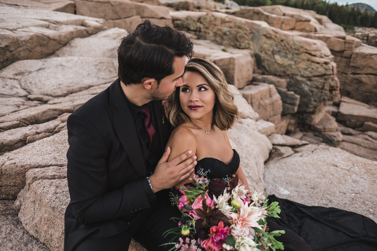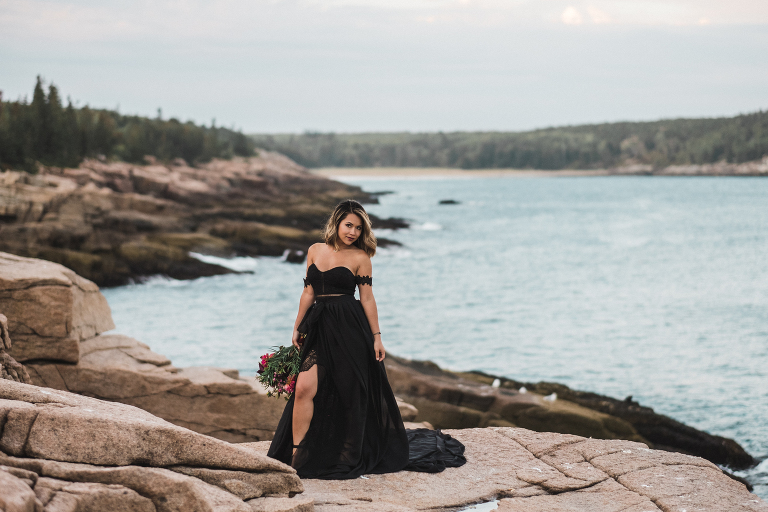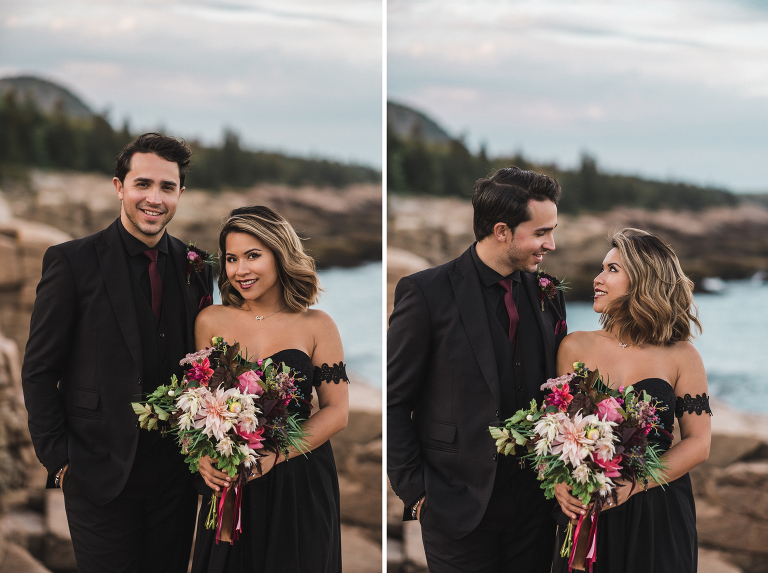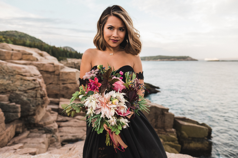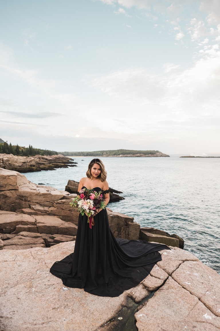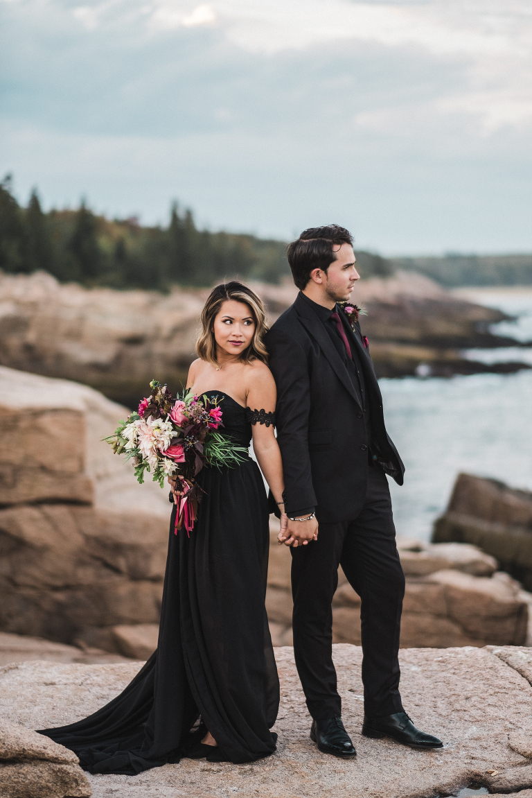 About seven years ago I dreamed up an adventurous wedding styled photo shoot in a spiral bound notebook that took place in Acadia National Park. I pictured rocky cliffs at sunset, gorgeous mountain views, and a couple that had magnificent chemistry. A few weeks ago I was able to turn that vision into a reality and it turned out so much more than I could have imagined. Truc and Mike are a beautiful couple and their confidence in front of the camera and their love for one another was a true gift to photograph. Without them and their determination to join me (a complete stranger to them) nearly eight hours north of home to work in Acadia National Park in Maine, then this photo shoot would never have happened. I am very grateful for their belief in my work and their excitement to make this photo shoot a reality! I am also incredibly thankful for my husband, Matthew, who joined me on this trip and was absolutely essential to making everything come out the way it did. He is a true visionary and I am looking forward to teaming up with him for a wedding next summer in Tuscany.