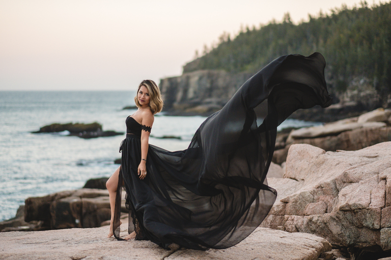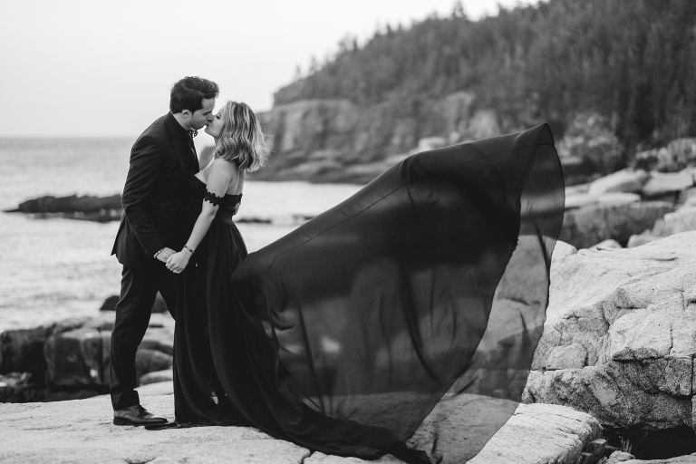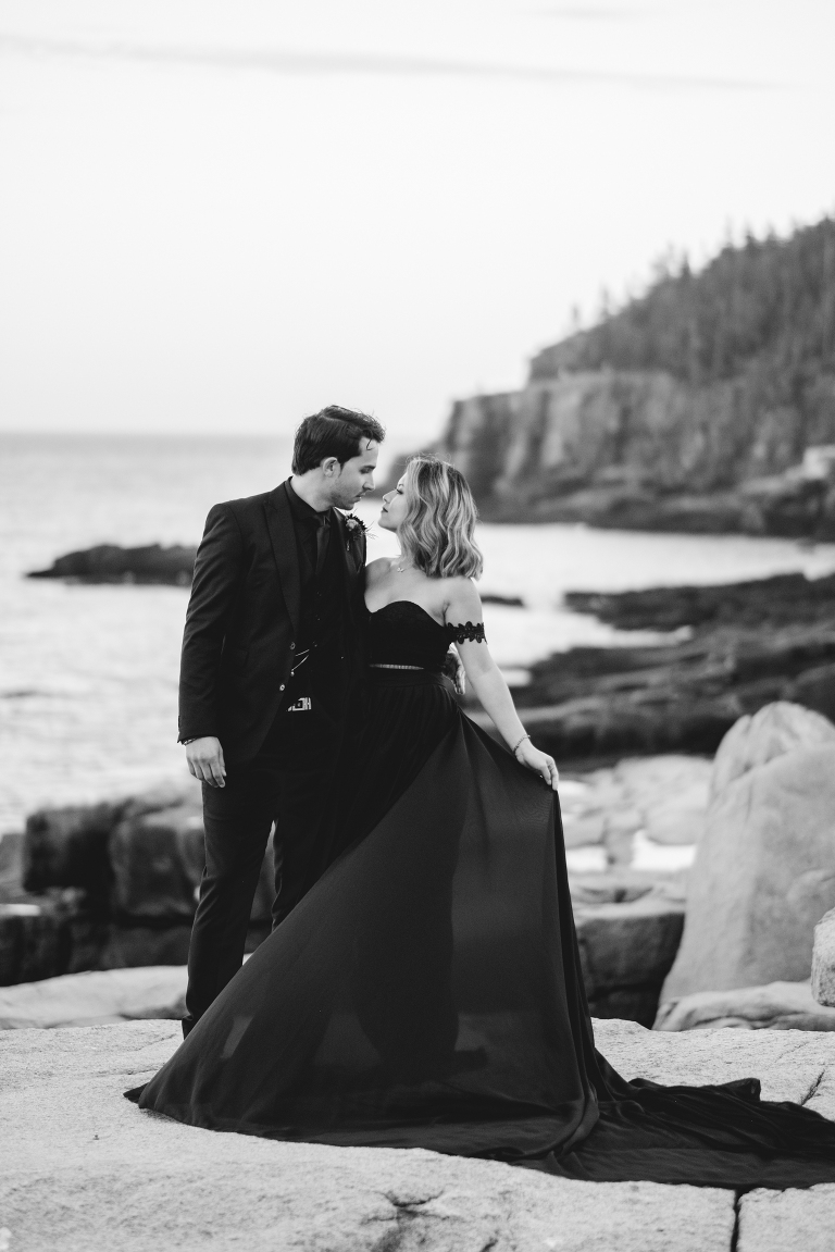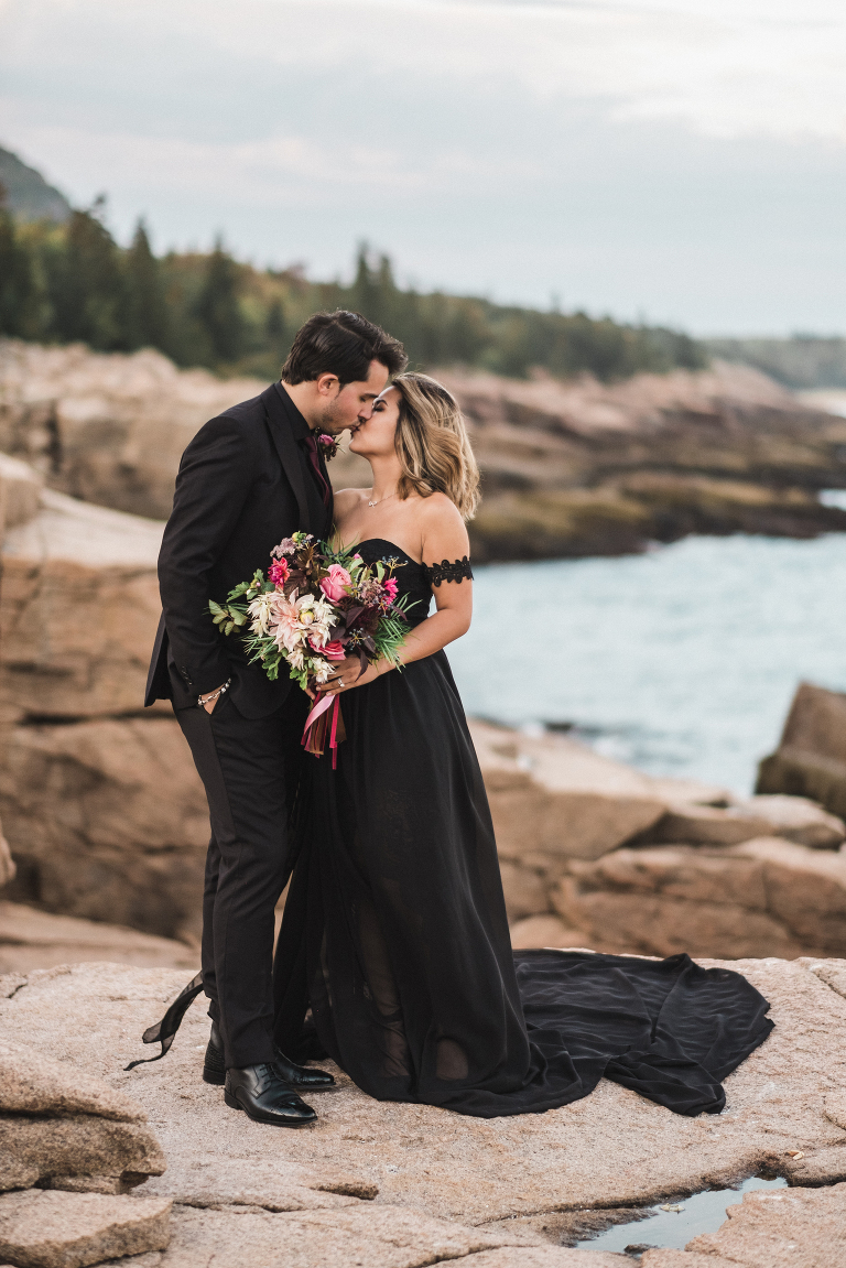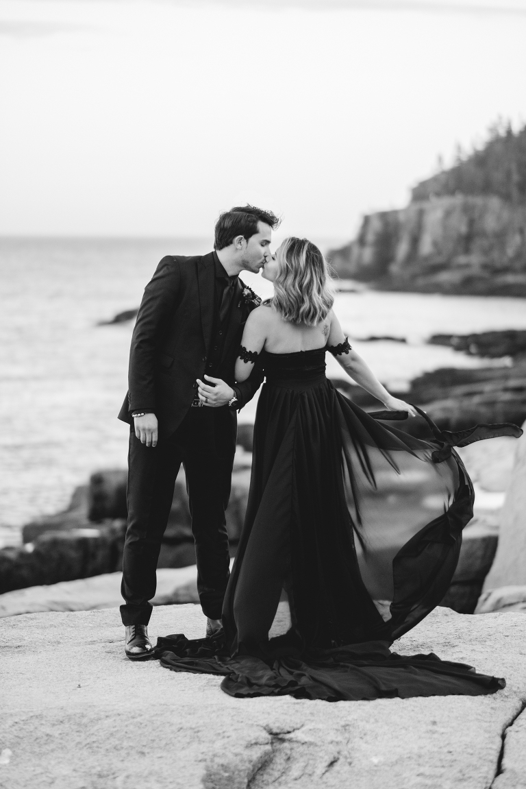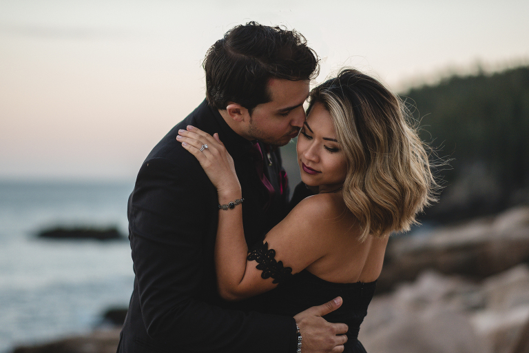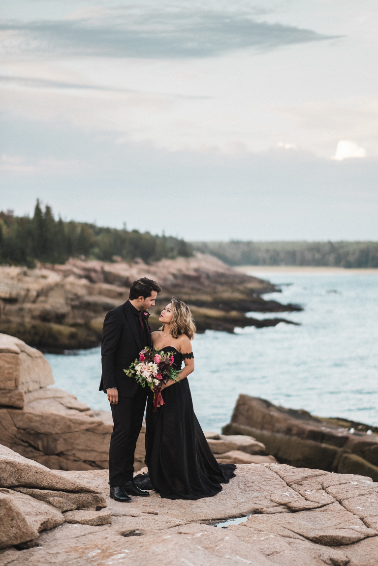 About seven years ago I dreamed up an adventurous wedding styled photo shoot in a spiral bound notebook that took place in Acadia National Park. I pictured rocky cliffs at sunset, gorgeous mountain views, and a couple that had magnificent chemistry. A few weeks ago I was able to turn that vision into a reality and it turned out so much more than I could have imagined. Truc and Mike are a beautiful couple and their confidence in front of the camera and their love for one another was a true gift to photograph. Without them and their determination to join me (a complete stranger to them) nearly eight hours north of home to work in Acadia National Park in Maine, then this photo shoot would never have happened. I am very grateful for their belief in my work and their excitement to make this photo shoot a reality! I am also incredibly thankful for my husband, Matthew, who joined me on this trip and was absolutely essential to making everything come out the way it did. He is a true visionary and I am looking forward to teaming up with him for a wedding next summer in Tuscany.