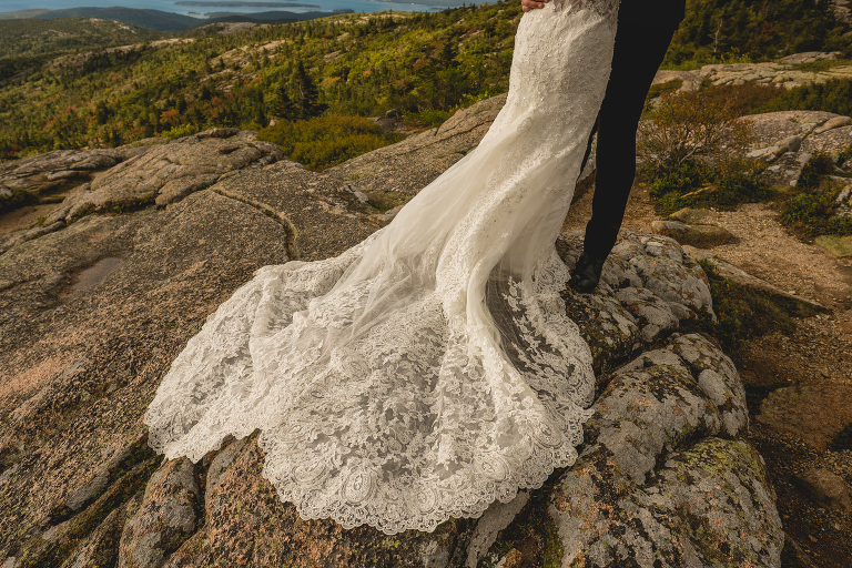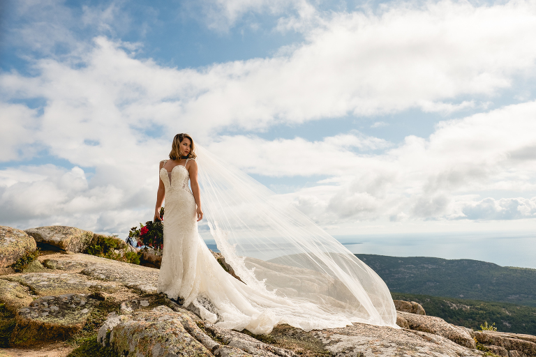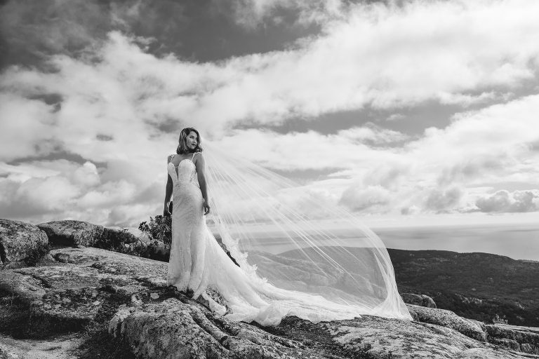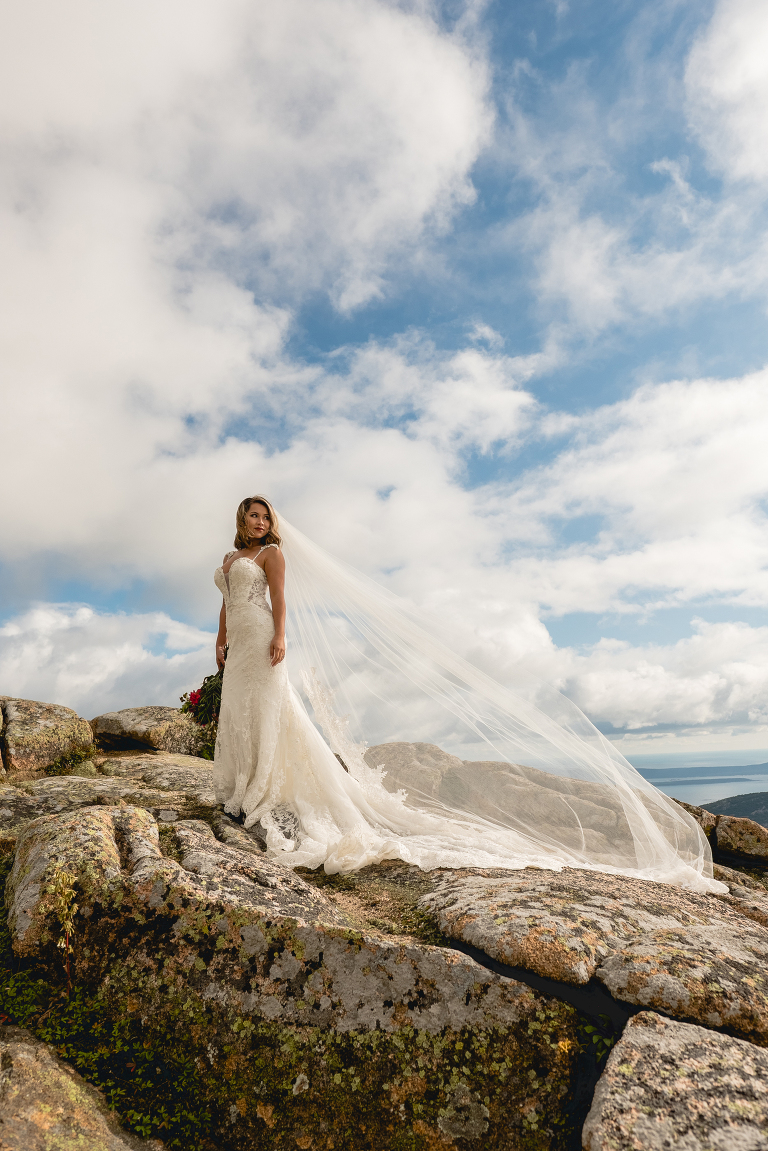 The final location was photographed the next morning at Cadillac Mountain. Truc brought her wedding dress and veil as a beautiful way to celebrate one year of marriage with Mike. I love when brides make use of their wedding gowns again to commemorate a beautiful memory with photographs. I tend to call these photo shoots “Glam-the-gown” sessions and they’re included in my Charlotte wedding collection.