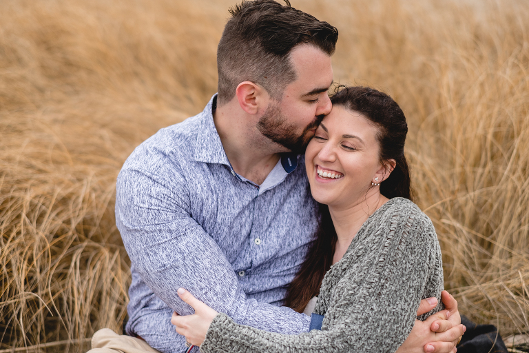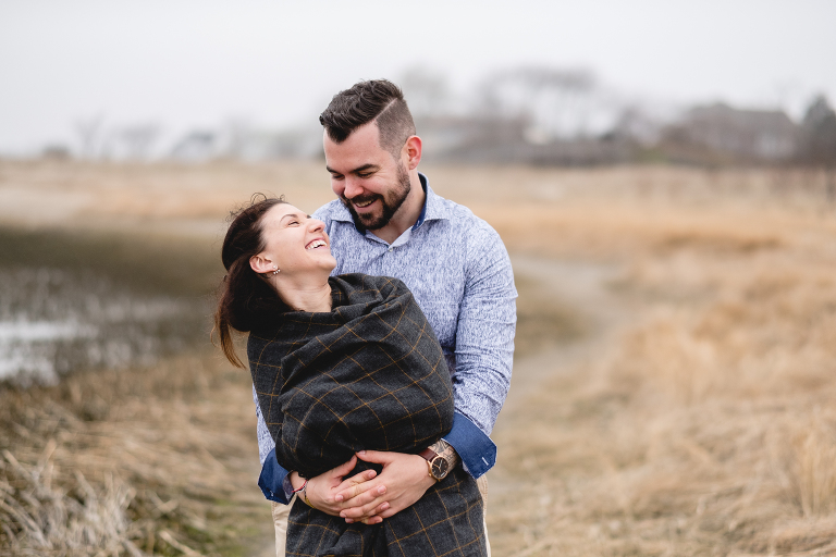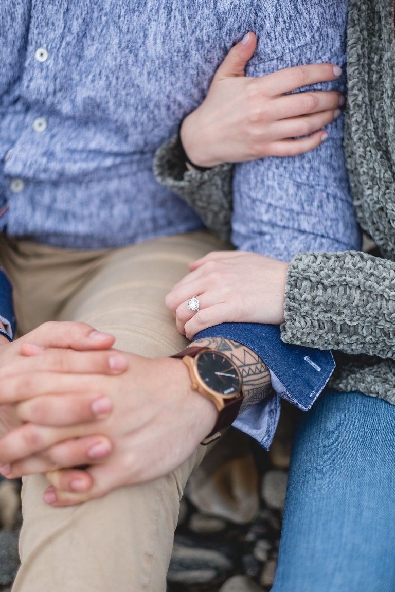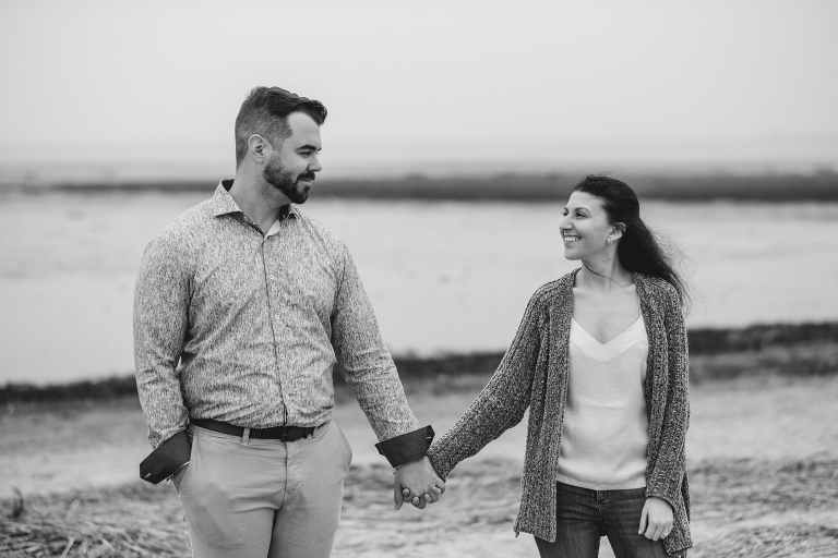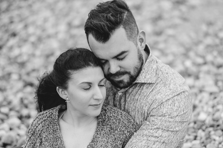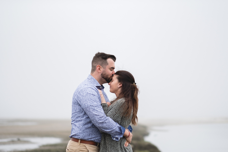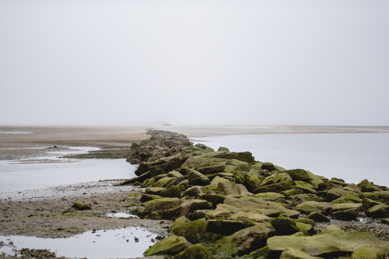 Alyssa and Nick braved a chilly and foggy day (that also turned into some rain) for their Milford beach engagement and I am so glad that they did! Although a sunny day with a blue sky was what we were going for, we ended top with something completely different and with the most magical results. The moss covered rocks, the fog over the shore, and the empty beach made for an engagement session that felt like it was in some far off place in a world made just for the two of them.