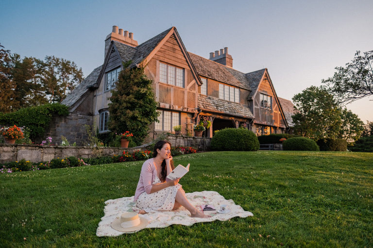 Hardbound books, teacups, and quill pens fly in the face of her e-reader, coffee, and smartphone…