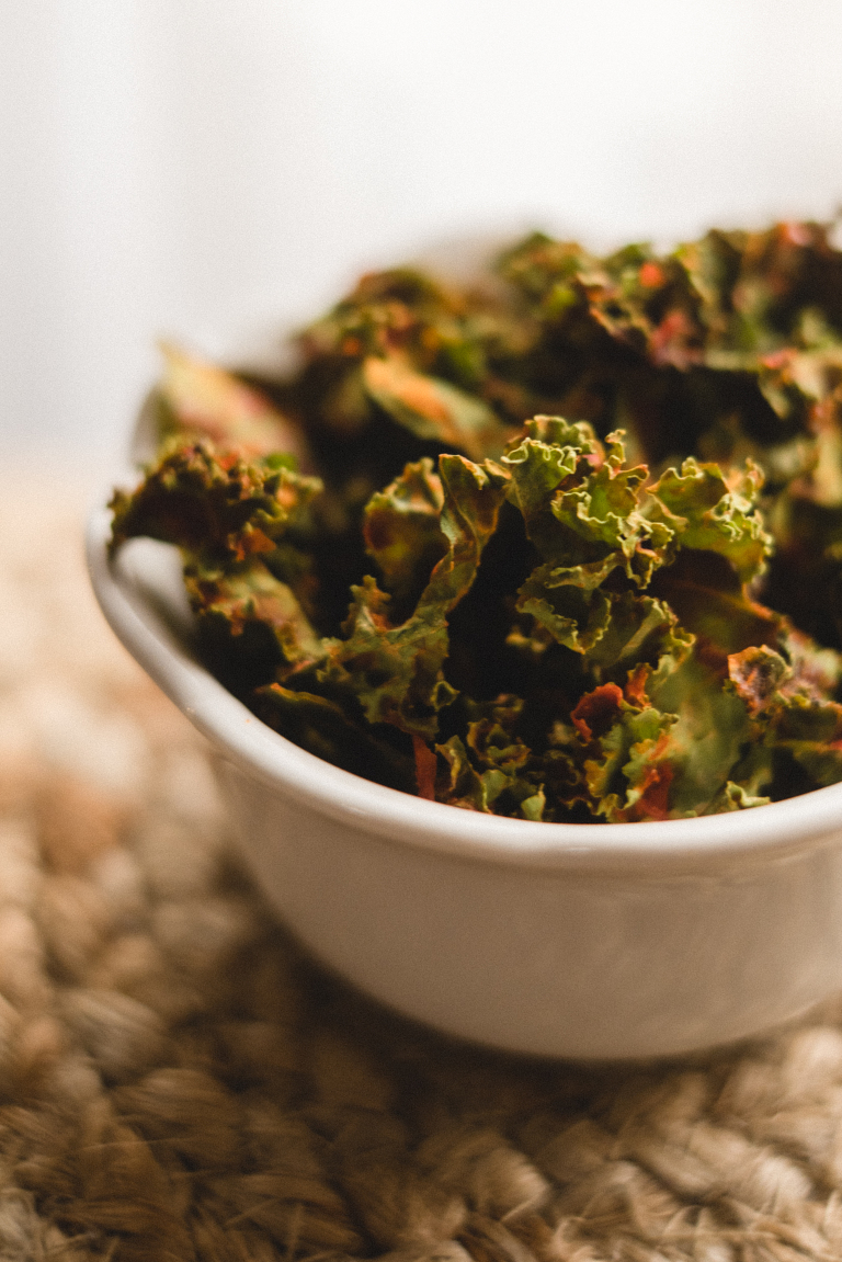I stumbled upon vegan “cheesy” kale chips quite spontaneously one day a few years ago. I was looking for some kale chip snacks at the store and they were out of regular, so I picked up the vegan cheese variety instead. I’m not vegan and I love cheese, but I also see the selling points of a vegan diet. I was instantly addicted to these chips. The only problem was that I felt they were highly overpriced for some dried up kale and they came in very small bags. I went on a mission to make my own.