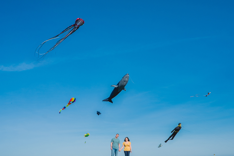 An even better bonus was this really fun kite flying event going on at the park. I love when something fun and unexpected comes up during a photo shoot. When Chelsea and Brandon arrived at the park I told them that I had this really fun idea that I simply had to try. “I want to photograph you both with the kites!” I told them. I’m sure it sounded crazy, but the results were so worth it.