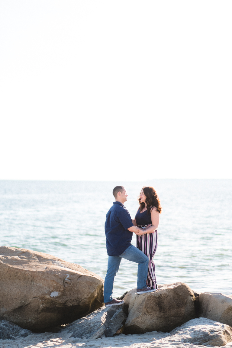Chelsea and Brandon’s spring engagement session at Harkness Memorial State Park was postponed the first try because of some terrible weather, but our second time around gave us this stunning summer-like day. I still can’t get over all of the amazing and vibrant colors from the blue sky and water to the vibrant green grass and ivy covered walls.