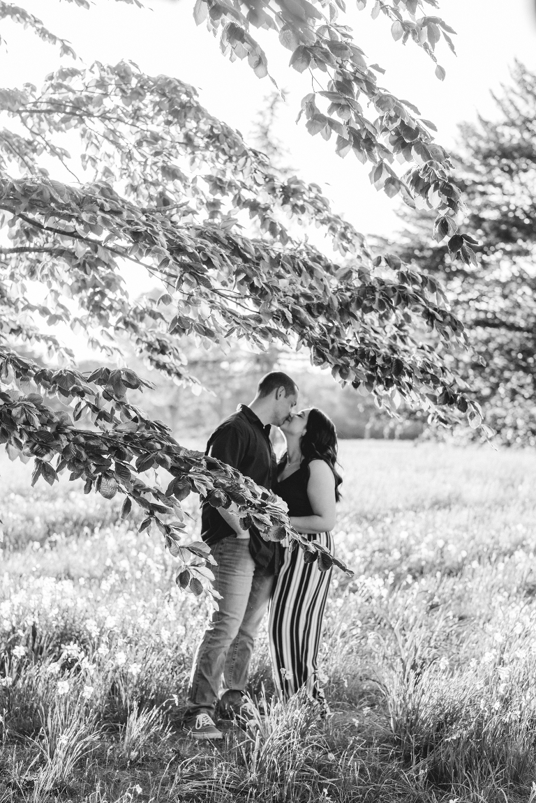 To complete our engagement session at Harkness, we wrapped up the photo shoot at this lovely daffodil field at sunset. The sun was so incredibly bright that day, but it created this amazing glowing atmosphere and vibrant colors.