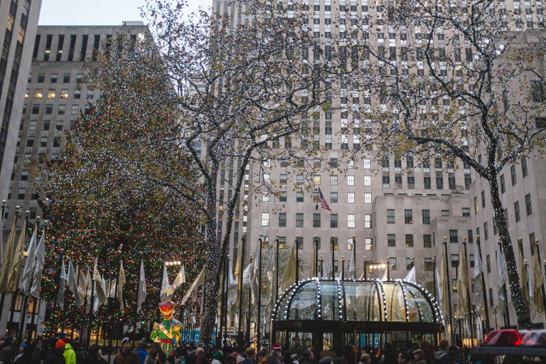 The Christmas tree at Rockefeller Center. The best time to visit is in the early morning or on a weekday, but our visit was on a Saturday shortly before Christmas so you can imagine how packed the center was! Still, no matter how busy it is, you cannot miss the center. We didn’t squeeze to the front this year because of the crowds, but the angel displays and the ice skating rink are a must if you’re visiting from far away. .jpg)