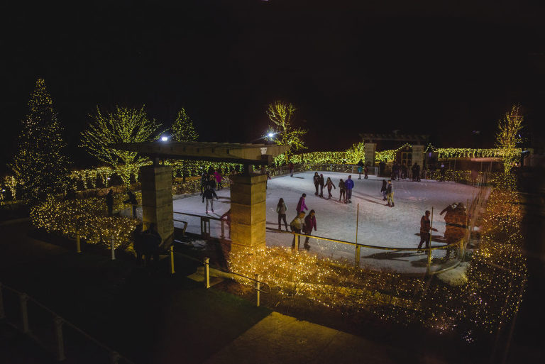 The outdoor ice rink at Connecticut’s Foxwoods Resort and Casino is my favorite outdoor ice rink in the state. Normally, a casino is not my scene, however, Foxwoods really knows how to create a winter wonderland. Right after New Years we went to the ice rink to look at the Christmas decorations. Sadly, it started to rain when we arrived so I took a couple photos before we explored the resort inside. The tall christmas tree and decorations were out. The second time we visited the rink, the sun was shining beautifully but the decorations were away for the end of the holidays. Still, the rink had Connecticut charm and 100,000 twinkling lights around the rink that keep the rink looking festive.