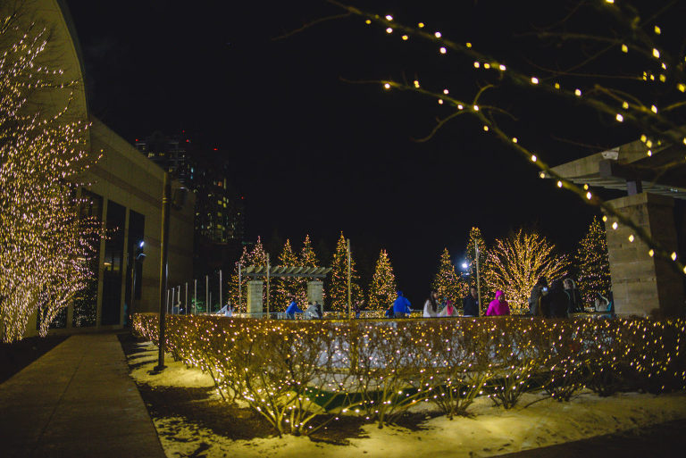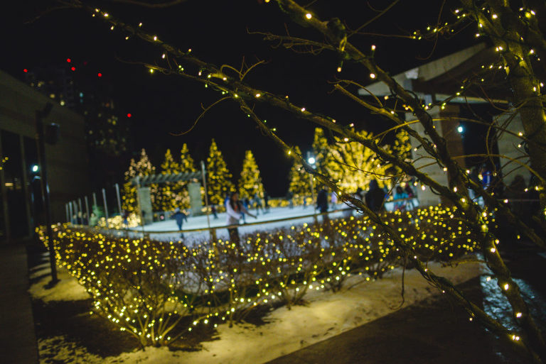 After the sun sets, grab dinner at one of the many restaurants. We had dinner at the Hardrock Cafe before taking another stroll on the ice. The rink is magical lit up at night! You really don’t want to miss it in person. The camera really did not do it justice. .jpg)