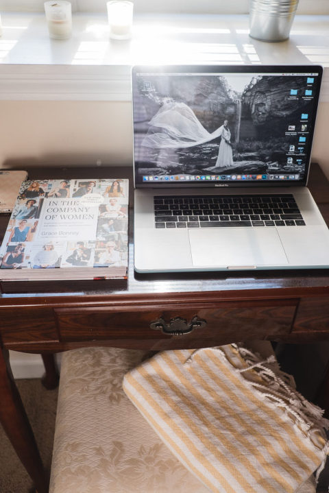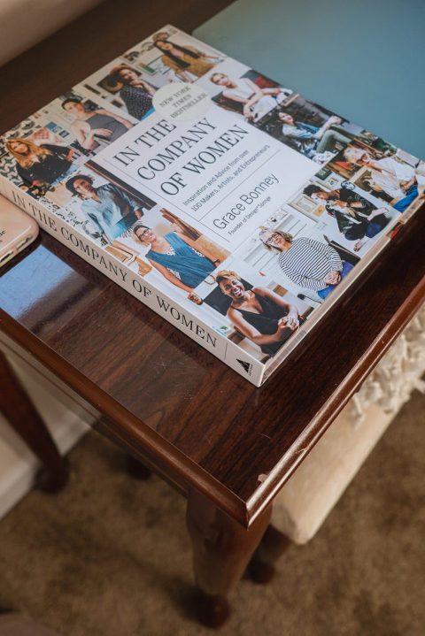 I also keep my “happy blanket” nearby, especially for chilly mornings this time of year. Make a space that inspires you. It can have plants, candles, paintings, cute desk accessories, books, crafts, tools, art supplies, or any number of things that makes you feel creative or inspired. This book, In the Company of Women, was a Christmas gift from my dad and it has been inspiring me a lot so far this year. The books I keep on my desk are always in rotation, but always inspiring to read and look at. It is my hope that I will utilize my space to maximize my potential this year with minimal distractions. That I will soak in the lovely sunlight, the fresh air from the open window in the summer, and embrace the solitude while removing distractions. I have learned that it is not about perfection,  it is about progress. What kind of space do you have at home that is all yours? How does it inspire you?