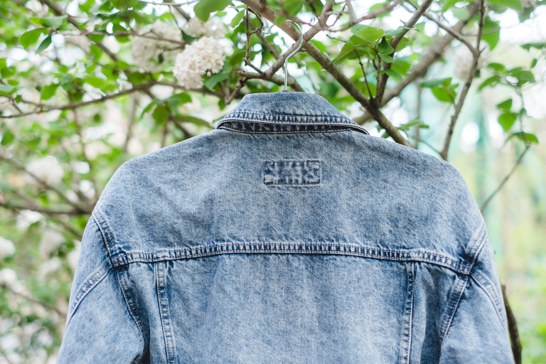 I found my 80’s style acid wash denim jacket at Forever 21 for under $35 a few months ago. You can still find similar ones on their website or on Amazon. You don’t need an expensive jacket for this project.These are a few more before photos of the jacket.