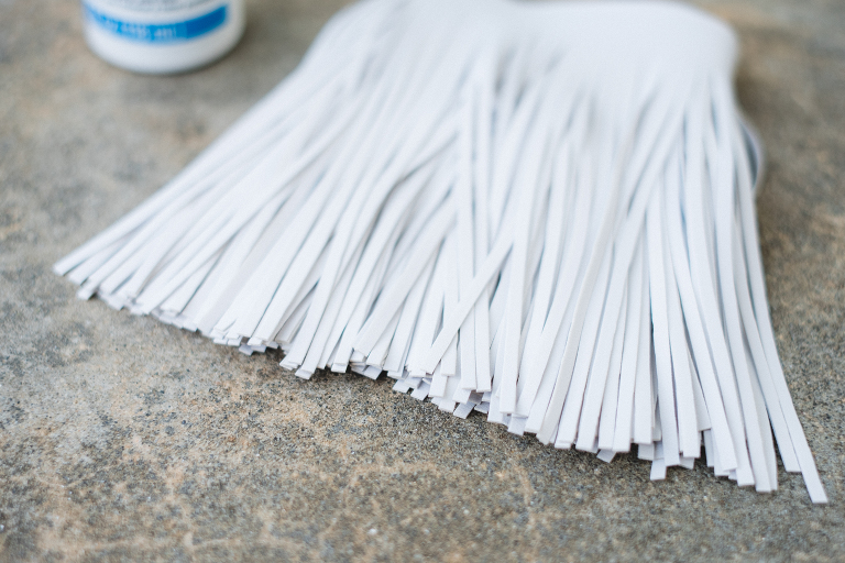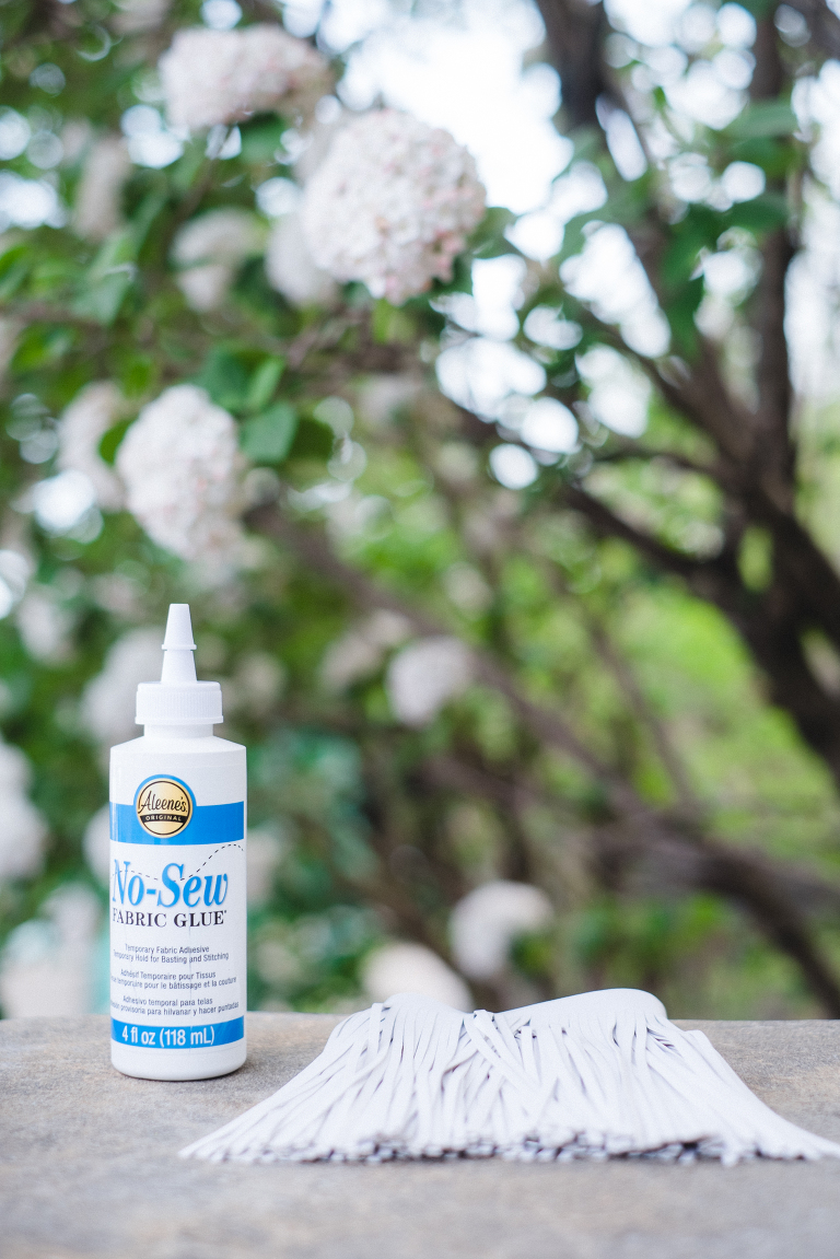 The permanent no-sew fabric glue is so important. I accidentally started with the wrong one and the fringe peeled off. I ordered another and made sure it would be permanent and so far I haven’t had any problems with the fringe coming off. I used this one: Aleene’s Fabric Fusion Permanent Fabric Adhesive