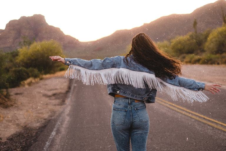 Ever since dreaming of doing a Route 66 road trip (a wish of mine since I was about fifteen yours old!) I dreamed of owning a vintage denim jacket with fringe and decals for road tripping adventures. I am currently working on making the Route 66 road trip come true for my 30th birthday next year, yet now in the present day I decided to make that dream jacket for our recent trip to Arizona.