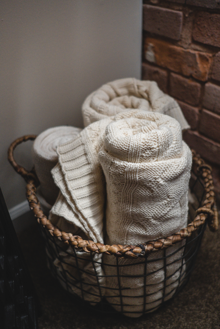 5. This basket of comfy throw blankets. They are great for chilly evenings in the living room or for guests to cozy up with during movie nights.
