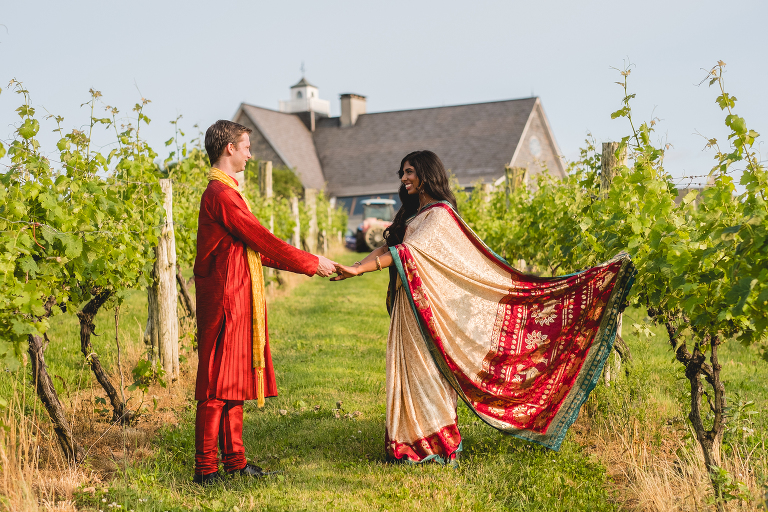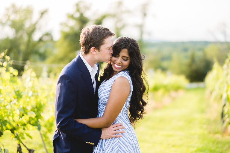 Semi-Formal: Semi-formal attire is the best alternative for a couple who does not feel comfortable dressing very formal for their photo shoot. Semi-formal attire also fits well with almost any location. From the city to a winery or even a farm or beach, semi-formal clothing looks beautiful in any setting. When selecting colors, you do not have to match, however, you will want to wear colors that work well together instead of clash. Prints such as florals, stripes, or polka dots are fun, but be aware of neon colors or patterns that have too thin of lines or are too busy because they can appear distracting in a photograph.