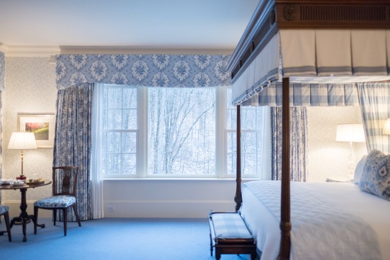 Taking the time out to rest and read felt like a Christmas miracle with how fast paced the past few months have been. It was another great reminder of how important it is to take time for spending together during the busy holiday season. Taking the time together at the Mayflower Inn was a wonderful way to celebrate Christmas and to rest before the bustle of the holiday. It was freezing and icy outside, however, inside we were warm in our suite with the most beautiful view of the woods frozen outside.