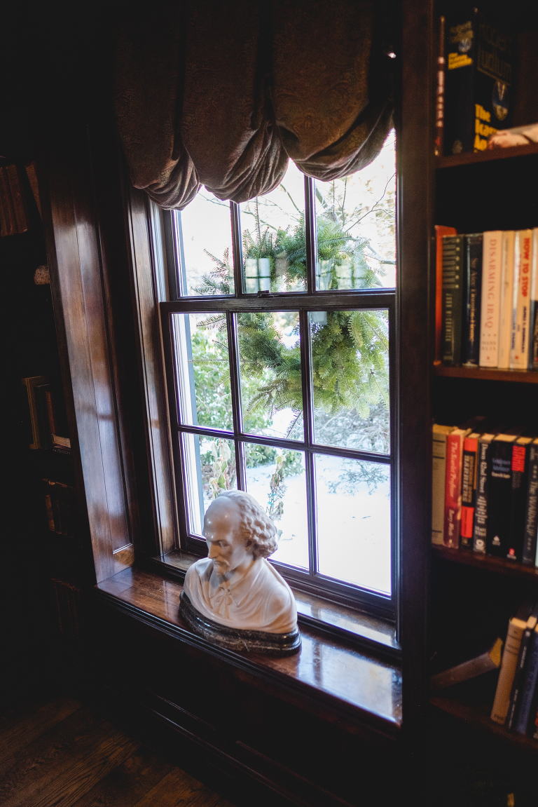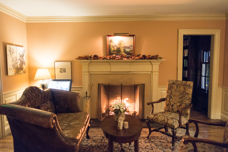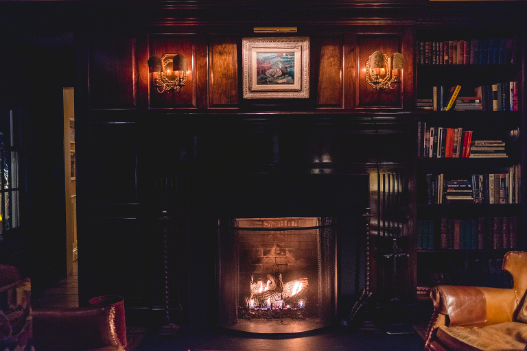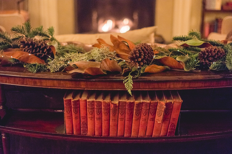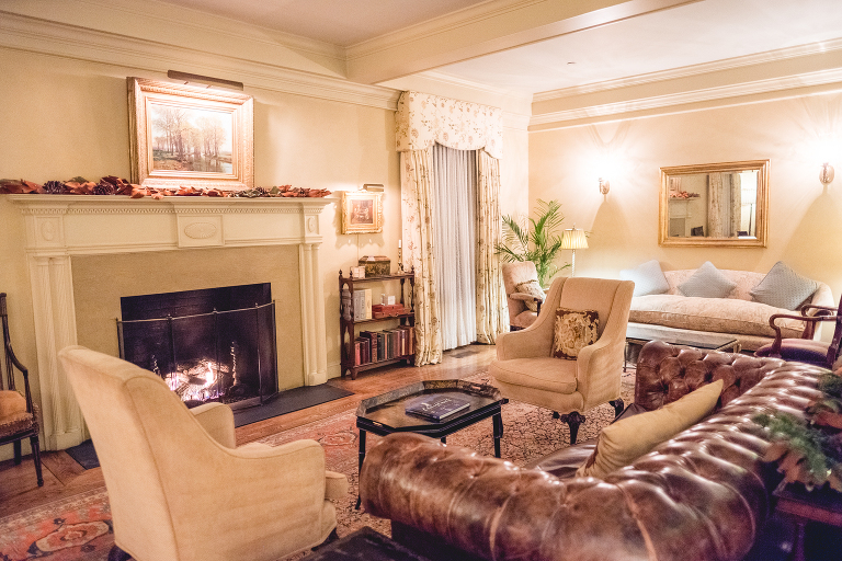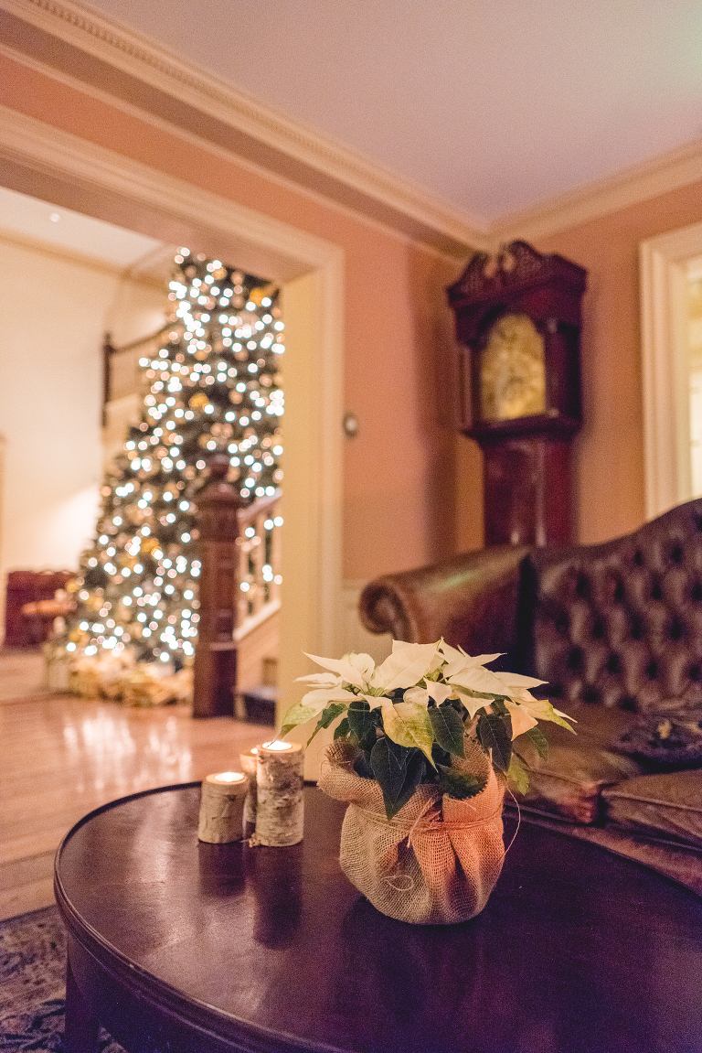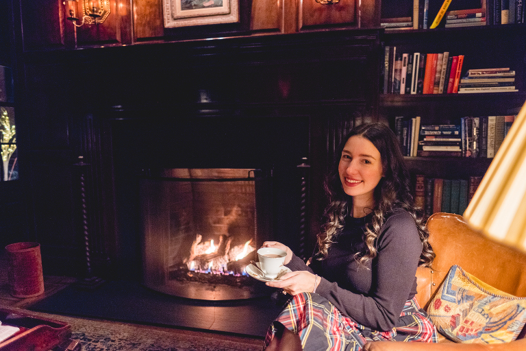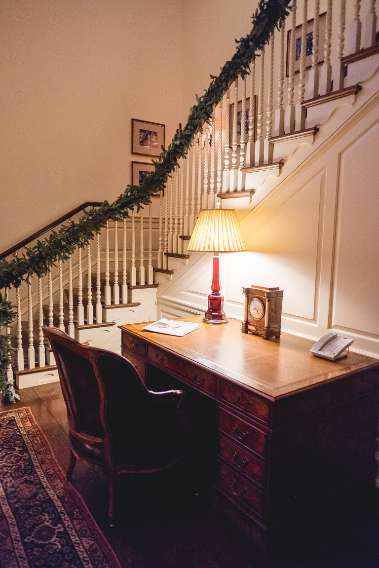We made our way back to the main building before our dinner reservation to enjoy some cocoa by the fireplace in the library. The entire Inn is decked out for the holidays with wreaths on every window.