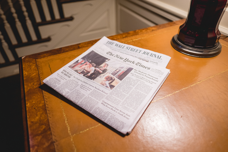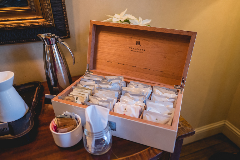 Bread, cheese, apples, and honey were waiting for us in our room for the loveliest afternoon snack. We had our reservations for the dining room set for seven so we spent the afternoon in our suite before exploring more of the Mayflower Inn and Spa. We took a short drive into Washington Depot, the cutest little town that is just minutes down the road. Washington is the town that inspired the popular television series Gilmore Girls. It is the original “Starrs Hollow.” We stopped into the market for a few drinks to bring back to our room at to the Hickory Stick Book Shop for a festive holiday themed jigsaw puzzle. The Hickory Stick is one of my favorite little bookshops in Connecticut and has been in Washington for over six decades!