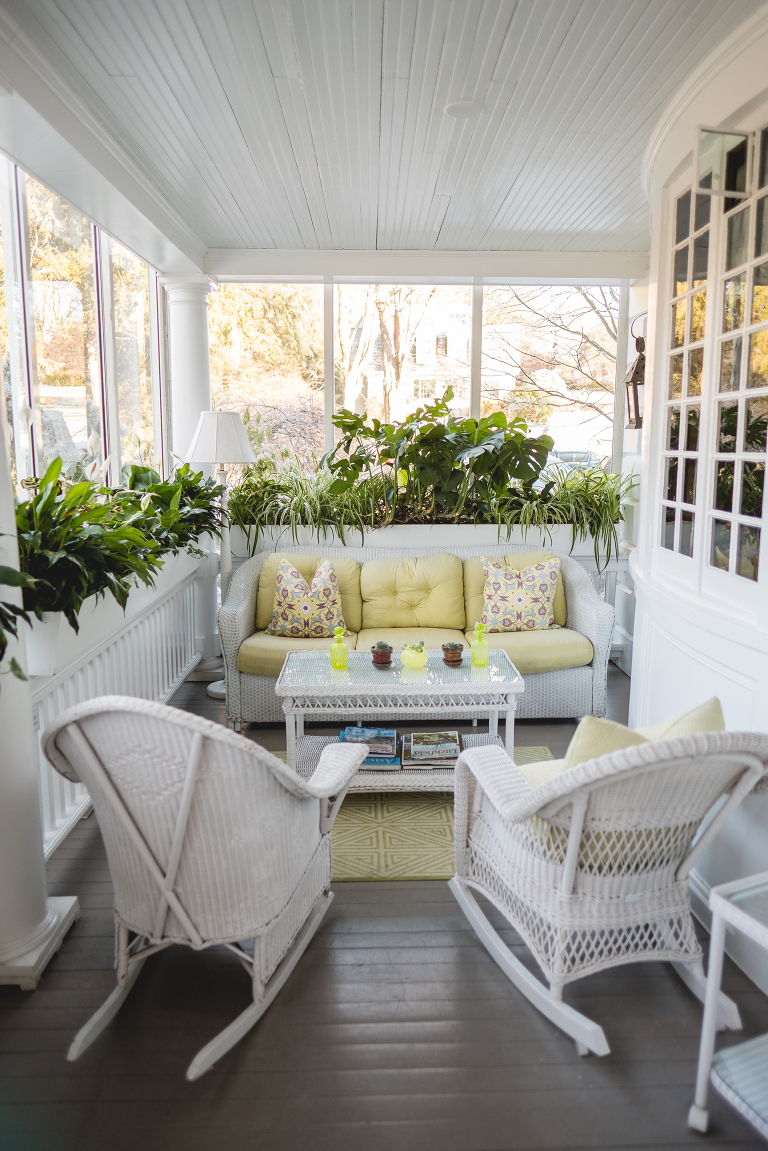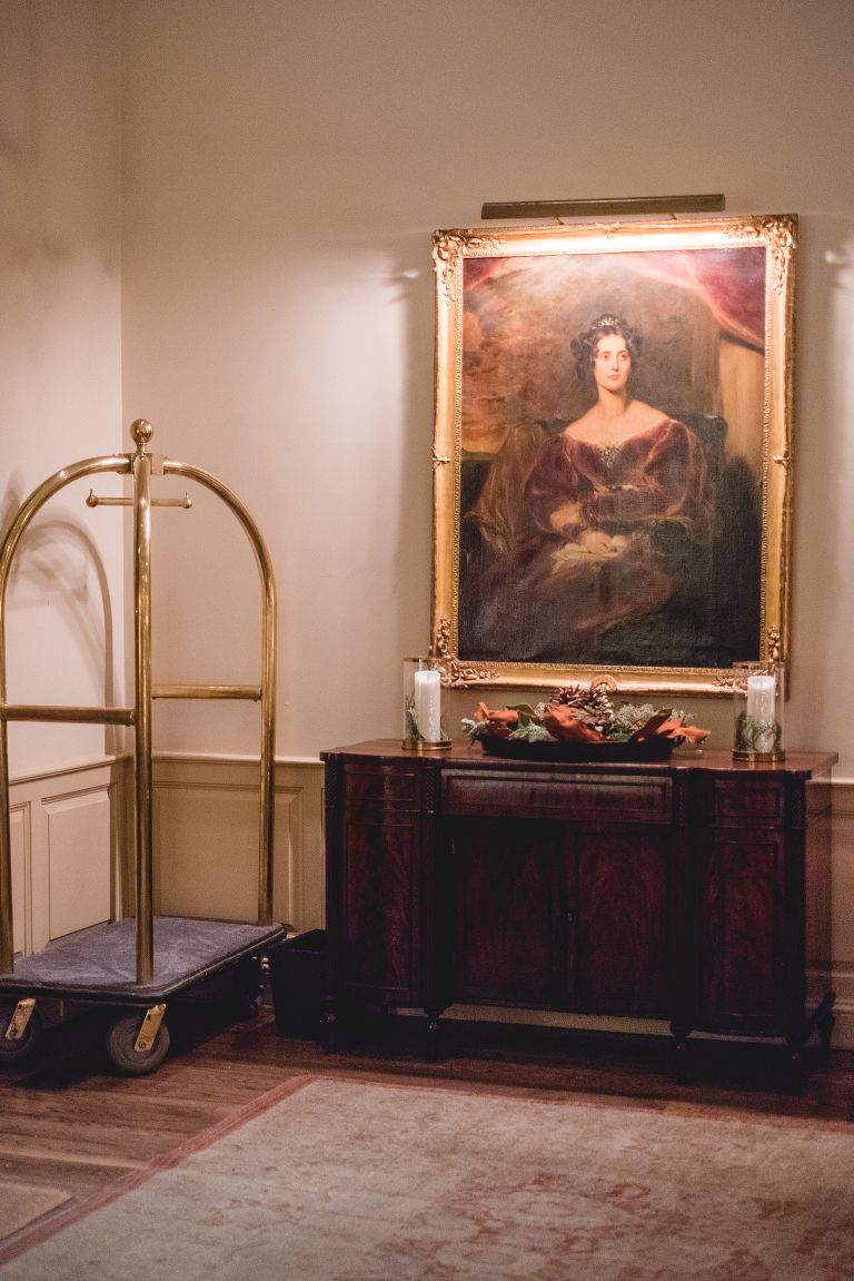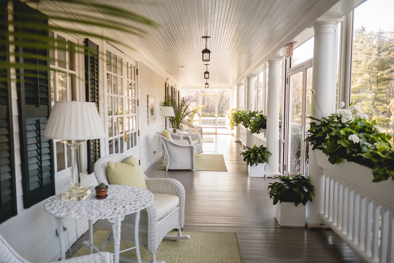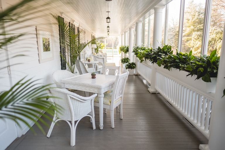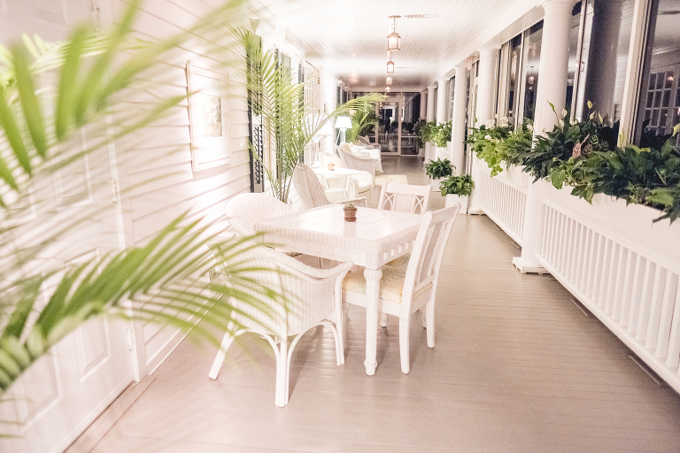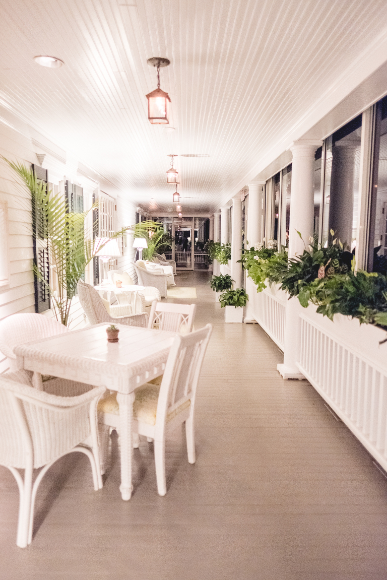 After dinner we took a stroll down the porch outside. I almost did not step outside fearing it would be freezing, but I went outside for “just a peek,” and discovered that it is glass enclosed and heated too! Make this my second most favorite room at the Mayflower.