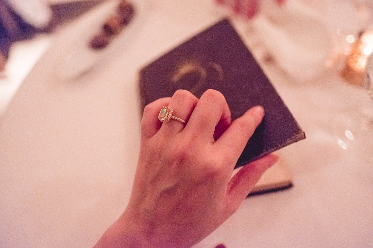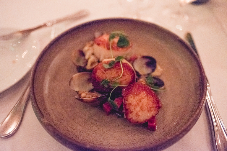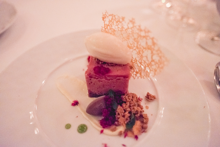 Dinner was at seven in the formal dining room. Please excuse my grainy photos; I took all of these in the low lit room without flash because I did not want to disturb other guests in the dining room. But look how great the presentation is. I ordered the sea scallops and Matthew had the prime rib. Matthew always knows when something is really well prepared. Instead of rushing through the meal as he tends to do on a busy work week, we slowed down to enjoy a delicious meal together. This time together is so important. We decided to skip the starters to make extra room for dessert and wow was that the right choice. -Dessert was amazing! Every holiday season the Mayflower’s chef comes out with a special holiday menu, making the Mayflower the perfect place to be for Thanksgiving, Christmas, or the New Year.