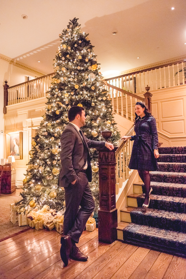 With Christmastime always being so busy every year, Matthew and I decided to do something different to make this year’s holiday season a happy one; we decided to go away for a couple days as our own “holiday getaway.” We knew we wanted to stay local in New England and keep our trip simple. We thought of maybe going to Vermont or the White Mountains of New Hampshire. Then I remembered my brief visit I made to the Mayflower Inn in Washington Connecticut last December. I stopped by to visit the Mayflower at a friend’s suggestion and remembered seeing their lovely inn in the snow and their magnificent Christmas tree in the main lobby. As Christmas had been days away at the time, I tucked the idea of returning the following Christmas season into the back of my mind. Making the time to spend together at the Mayflower Inn and Spa was one of our best decisions this year.