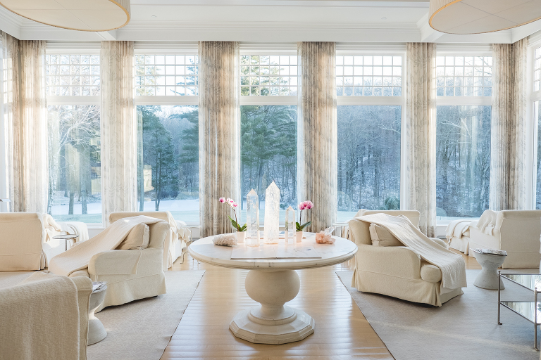 I had never had a massage before so having my first massage at the Mayflower Spa was an unforgettable experience. I chose the Mayflower Blend because it was a mix of a relaxing massage and deep tissue. I was brought down the the “lilac room” and left feeling like all the knots in my shoulders were finally at ease and my stress levels were the lowest they have been in ages. When my massage was over I sat by this window in the cozy seat, sipped on hibiscus water, watched nature outside the window, and read from Litchfield Magazine.