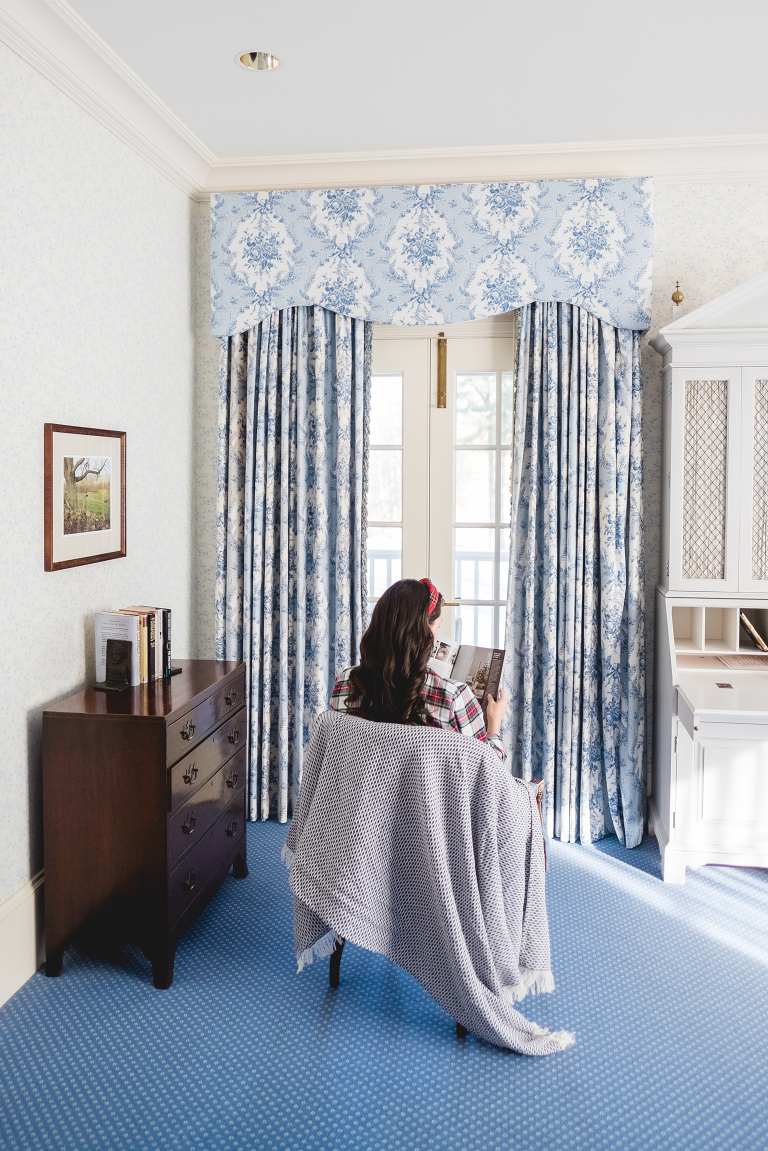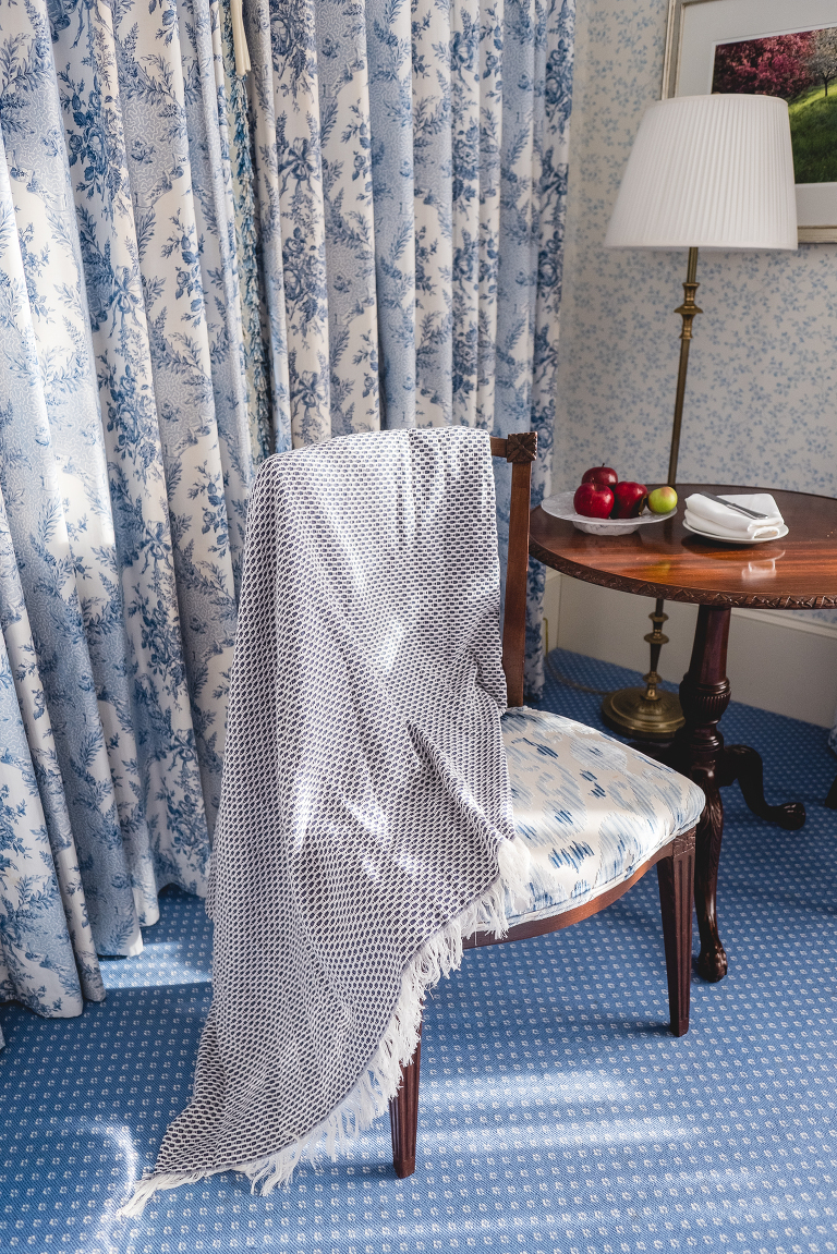 The next morning I rested in our room before going for a morning walk. I always travel with a small blanket, especially when I travel in the winter. This time I brought my heron throw blanket from Tide Hill Home, which was surprisingly the best choice because it was a perfect match for the decor in our room.