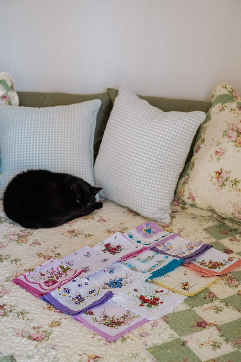 You can use silk scarves instead of handkerchiefs if you prefer. The vintage inspired handkerchiefs I used were found here on Etsy.