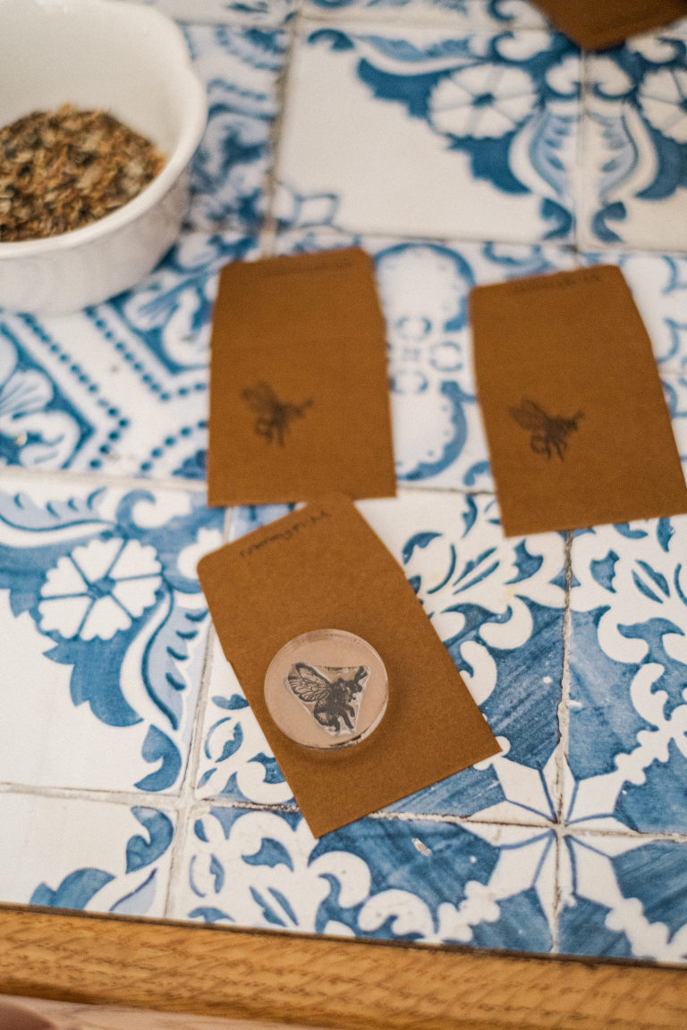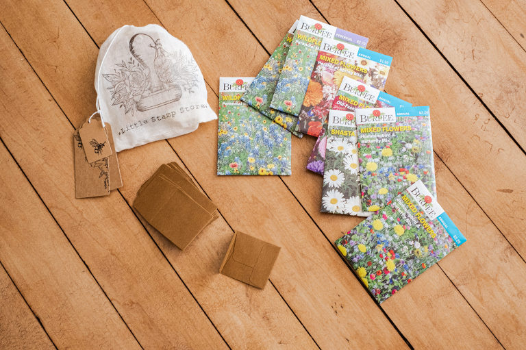 I bought several packets of various wildflower seeds and mixed them together to put into custom envelopes. Seeds are a lovely spring party favor.