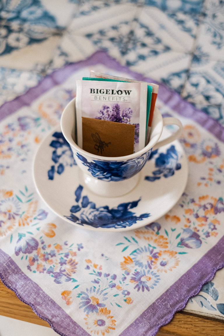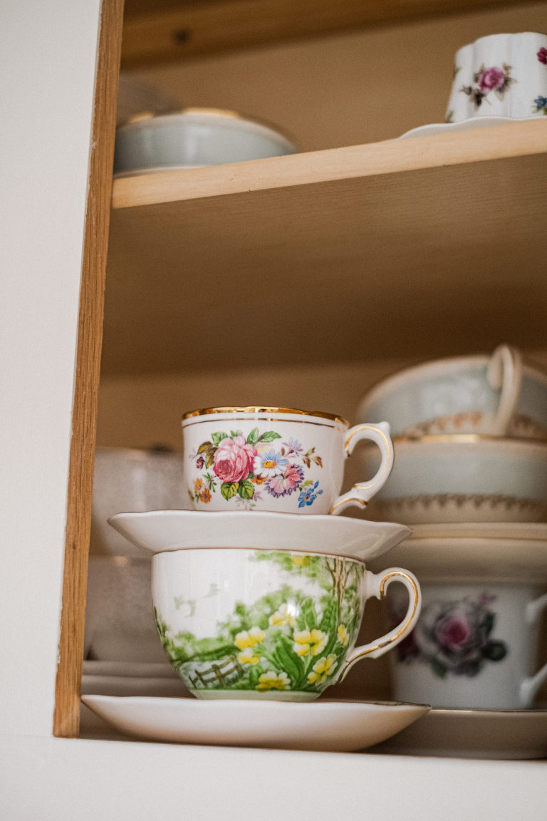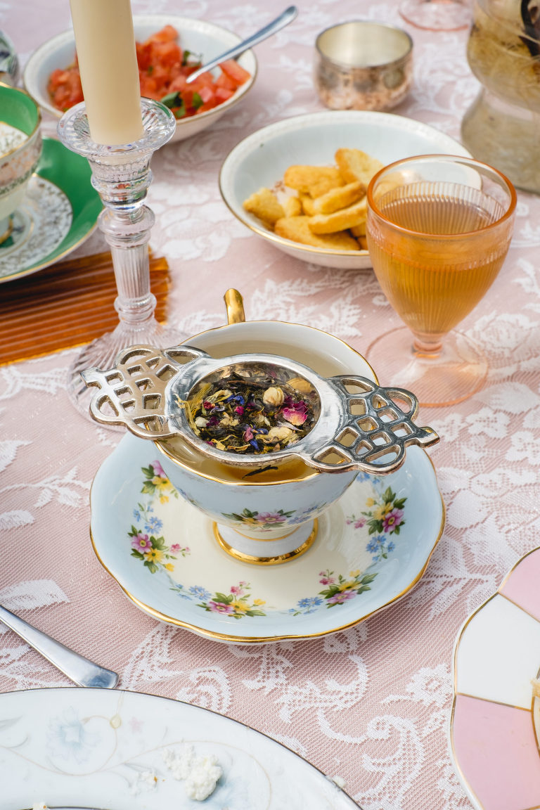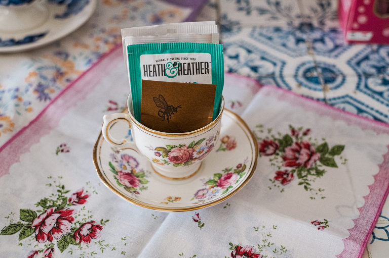 As for the teacups, many of them were collected over several weeks from local Goodwills, thrift shops, and the Elephant’s Trunk Flea Market. I did my best to pair each tea cup with each guest’s personal style.