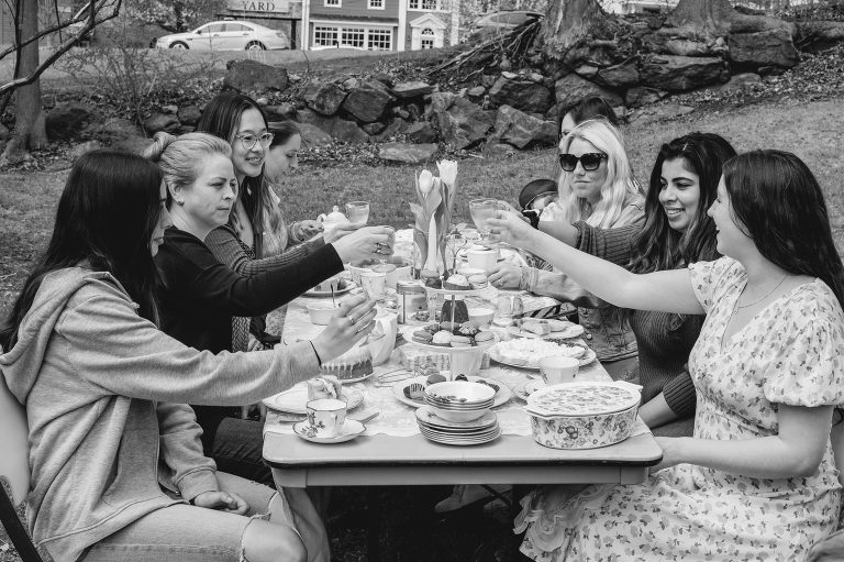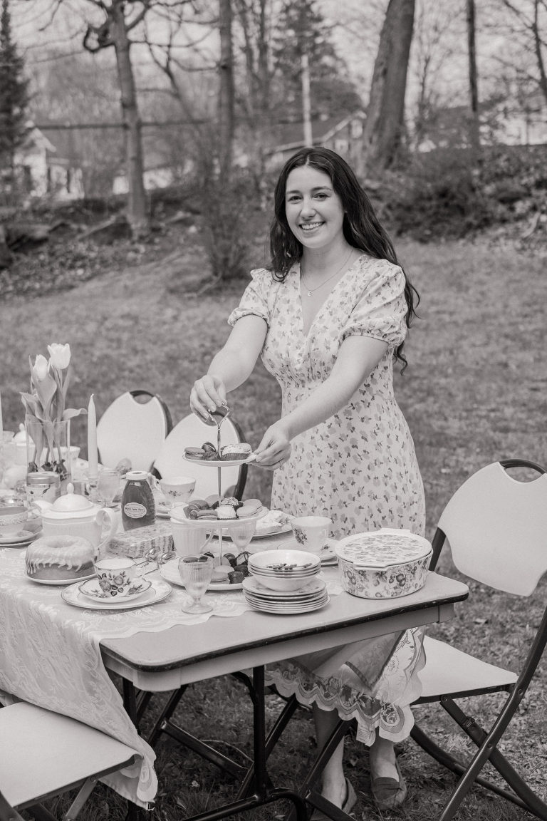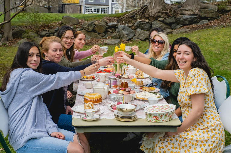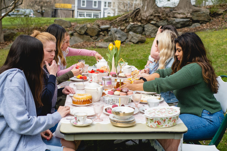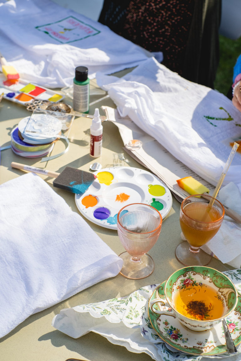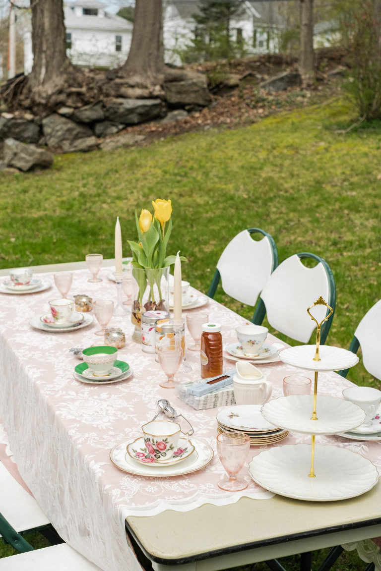 As for the teacups, many of them were collected over several weeks from local Goodwills, thrift shops, and the Elephant’s Trunk Flea Market. I did my best to pair each tea cup with each guest’s personal style.