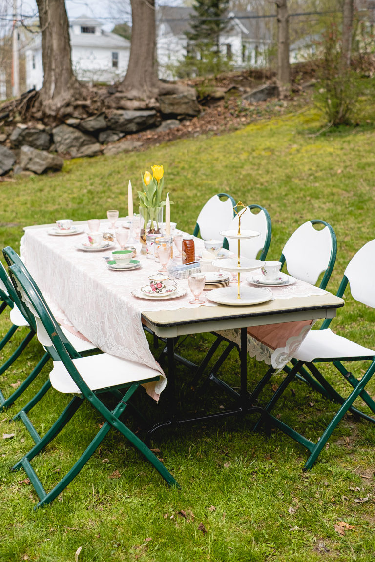 For the past year I have been renting an apartment in a house so I have the use of a yard for the first time in over a decade. I believe we made the most of it on this lovely warm day. I am going to share with you all of the steps I took when planning and hosting the tea party.