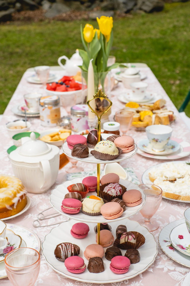 The sweets are perhaps the most important element of any tea party after the tea. I dropped the ball on this one and ran out of time for scones! My friends tell me that the menu was big enough already that they did not miss the scones, however, it is a vital party of any tea party and I don’t suggest missing them. Pair your scones with clotted cream and an assortment of jams.