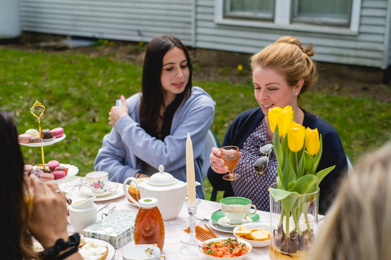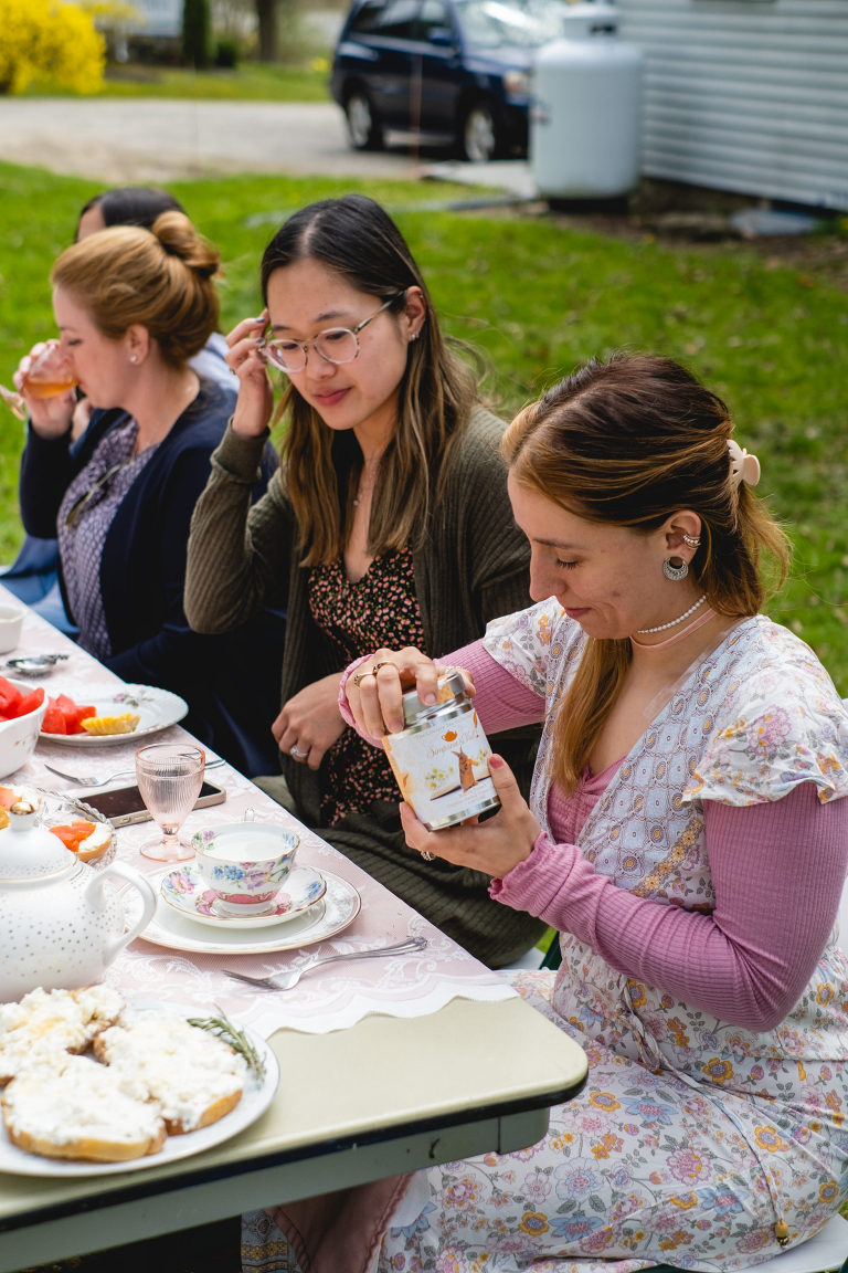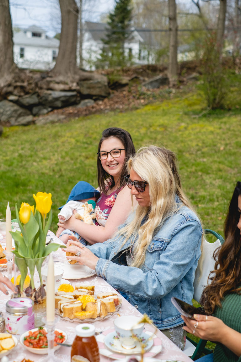 I did not give a dress code to my guests as I wanted everyone to be comfortable, but dresses were more than welcome. I highly recommend a nice dress or slacks to any tea party. For a spring tea party, layers with a cardigan or light jacket are always a smart idea.