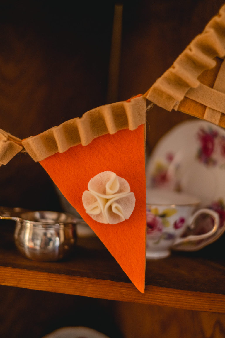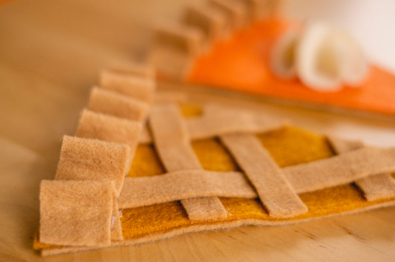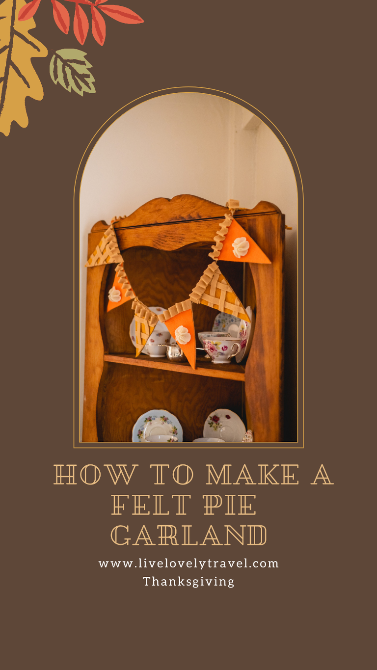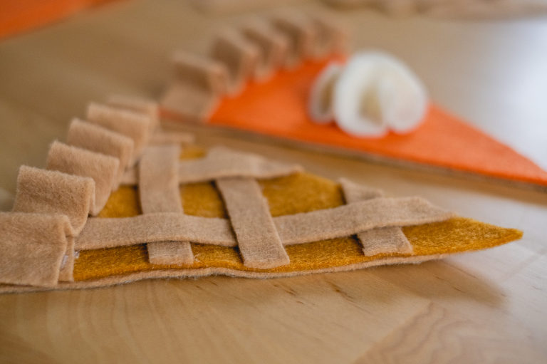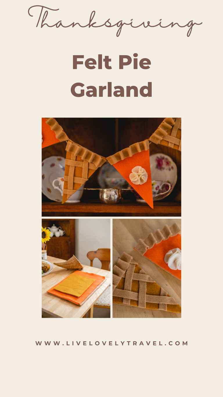 I love Thanksgiving because it is a day set aside to practice gratitude for all of the wonderful people and things in our lives. It is a day to reflect on what matters most and to be present with appreciation. I know that in the United States a lot of people allow the holiday of Christmas to overshadow Thanksgiving so this year I wanted to put more emphasis on celebrating the holiday. I do not put up my Christmas tree before Thanksgiving. Instead, I decorate a cornucopia centerpiece and try to focus more on the holiday that is actually here. A felt pie garland is just the craft to help bring yourself back into the present moment and the present holiday. I will show you step by step how I made my felt pie garland.