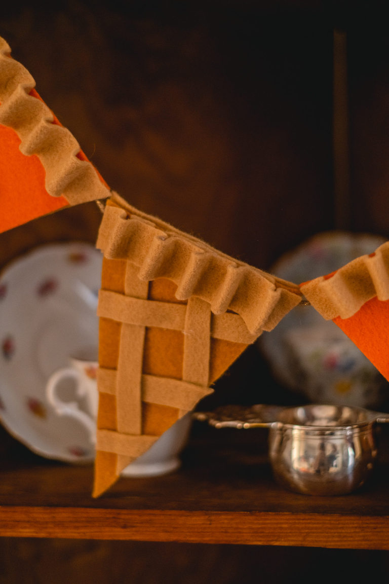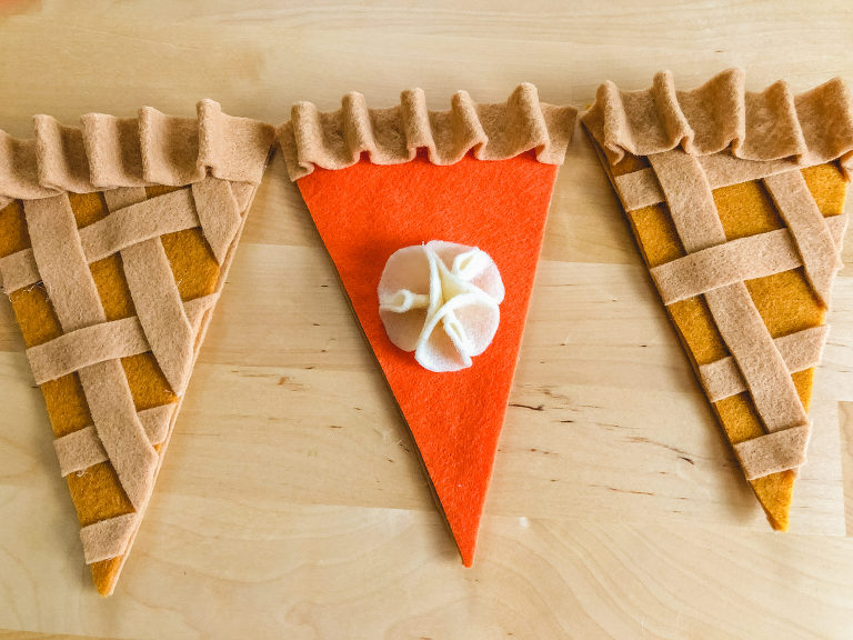 Have fun making a pie garland of your own! Which flavor is your favorite; pumpkin or apple?