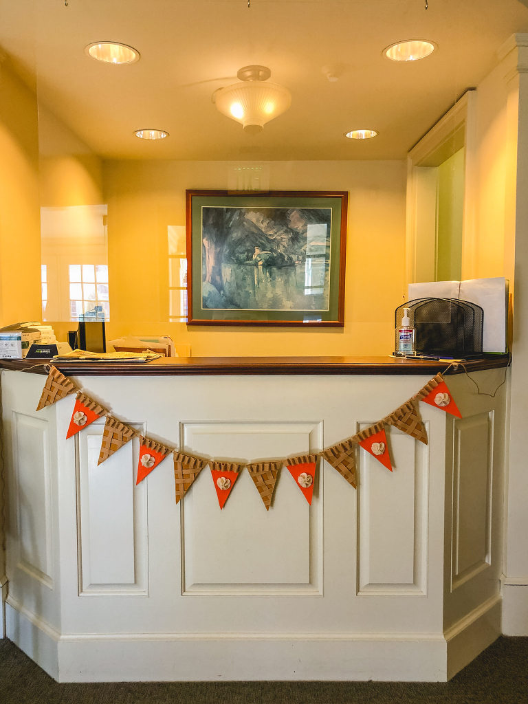 I made two garlands. One that that I have on my corner hutch at home and the other that I strung up on my front desk at work to bring some Thanksgiving cheer to the office.