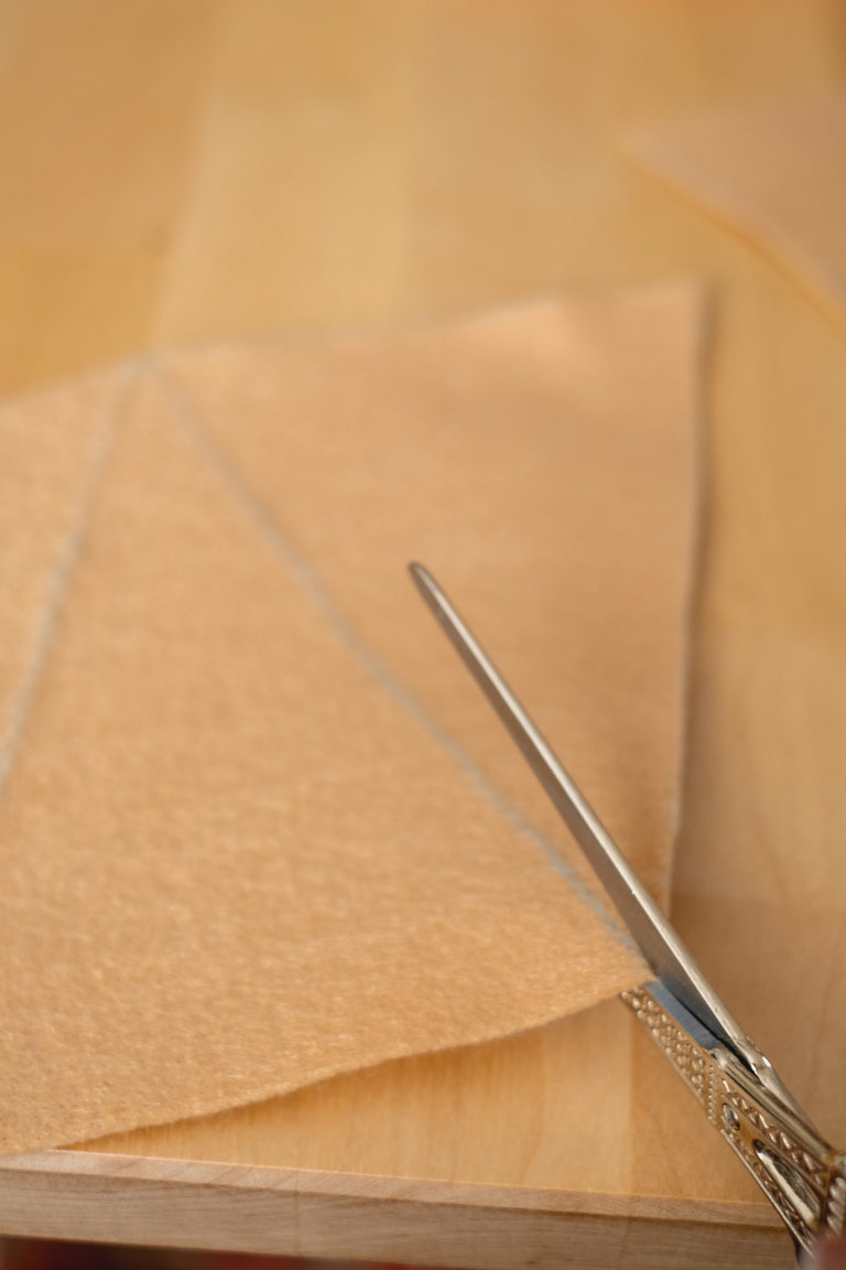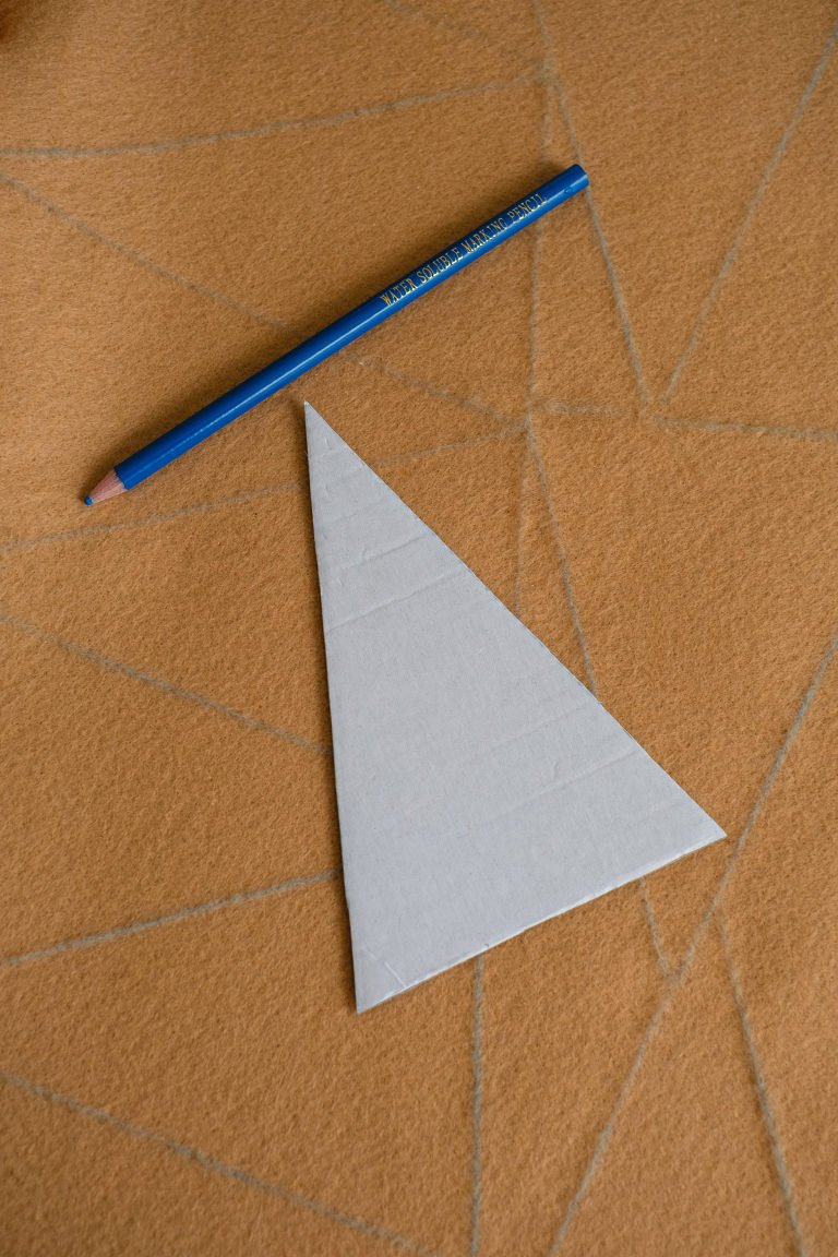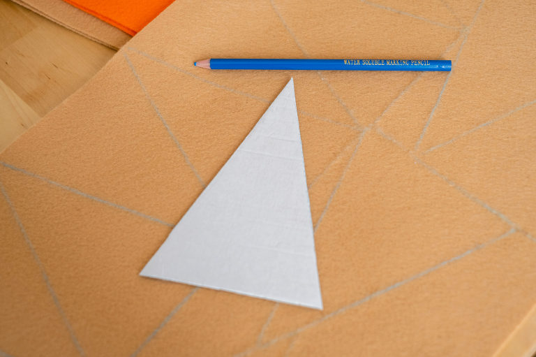 Once your stencil is made you will trace it onto the beige felt to make the pie crust base. Alternate the stencil to save as much of the felt as possible. For one garland you will need twelve slices and for two garlands you will need 24.
