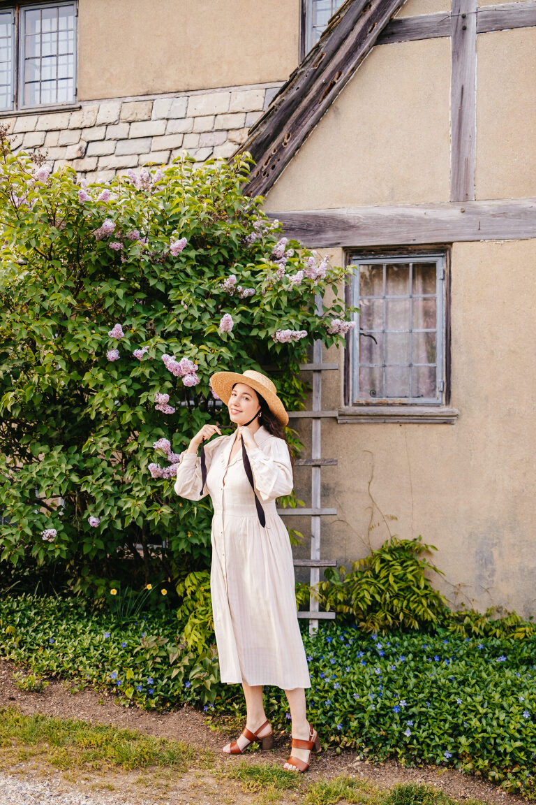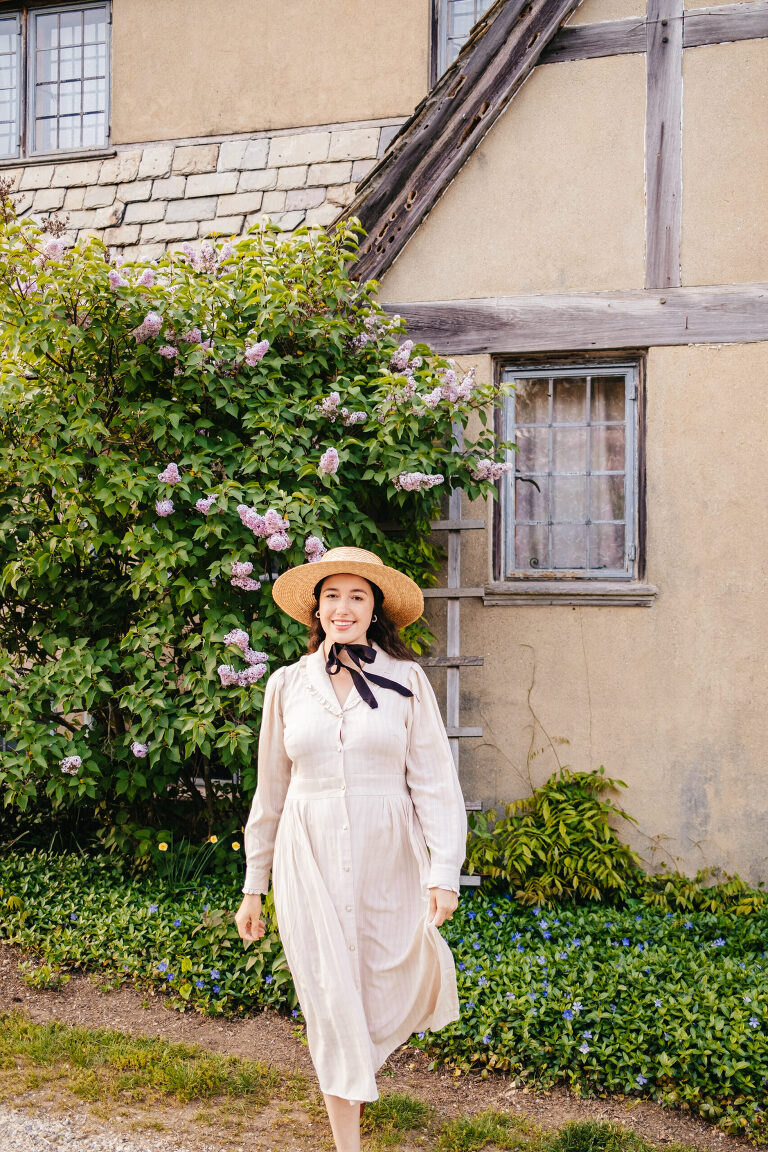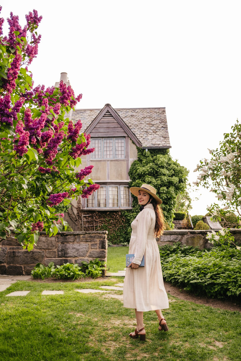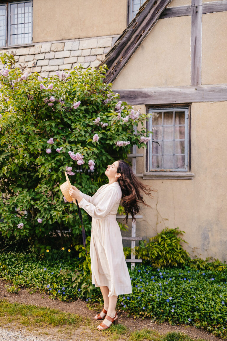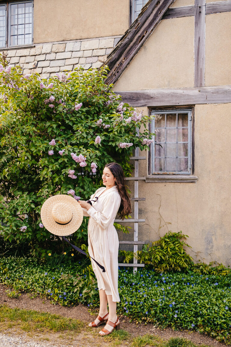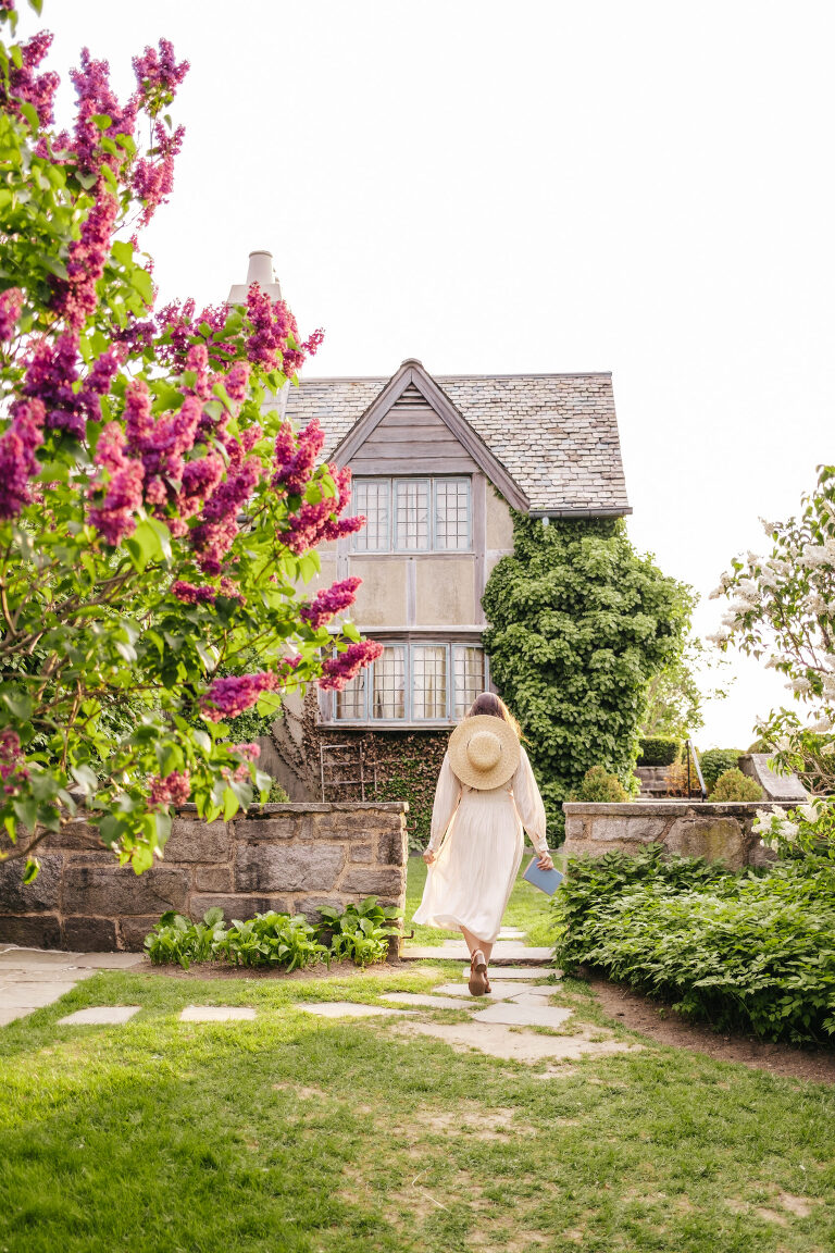 The house is designed to look like a Cotswold English cottage and there are open house tours in the late spring through early autumn. As charming as this beautiful house is, the grounds truly ignite my imagination. If you follow me on Instagram @LiveLovelyTravel, then you may already know that I visit Topsmead quite often throughout the year. Every season is spectacular, but nothing catches my imagination quite like Topsmead in mid-late spring. The meadows, the trails, and the hillside covered in beautiful flowering trees….