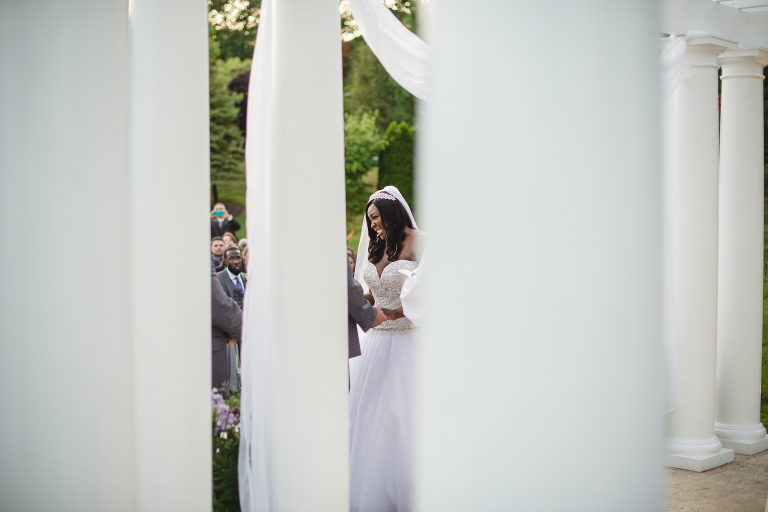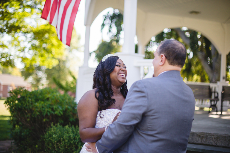 I adore first looks before a wedding because they give the couple a special moment together before the ceremony and the rush of the reception. These moments as the groom waits to see his bride for the first time is one of my favorite moments. Before the ceremony, Milah and Jim surprised one another at the gazebo in Monroe.
