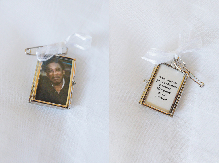 Milah had this beautiful picture frame made to carry the memory of her father with her down the aisle. This beautiful frame was attached to her bouquet and carried close to her heart. This beautiful Tiffany necklace was a special wedding gift to Milah from Jim.