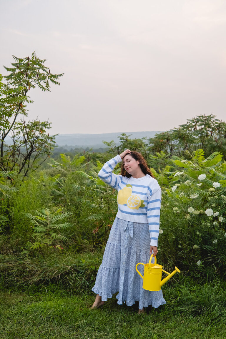 I’m not a fashion blogger, but maybe blogs would be more fun if we showed off our favorite outfits more often instead of clothing hauls. What if we shared photos of the outfits that bring us joy, even if they’re not “flattering” or that outfit that makes you feel great even if it’s not trendy? What if we all pulled out the outfits we re-wear constantly and took photos? The trusty worn in pair of jeans. The cozy sweater with pilling on the sleeve because it is worn and loved so much. That new-ish summer dress you’ve been wearing every week or an old favorite from many years back that still swishes just right.
