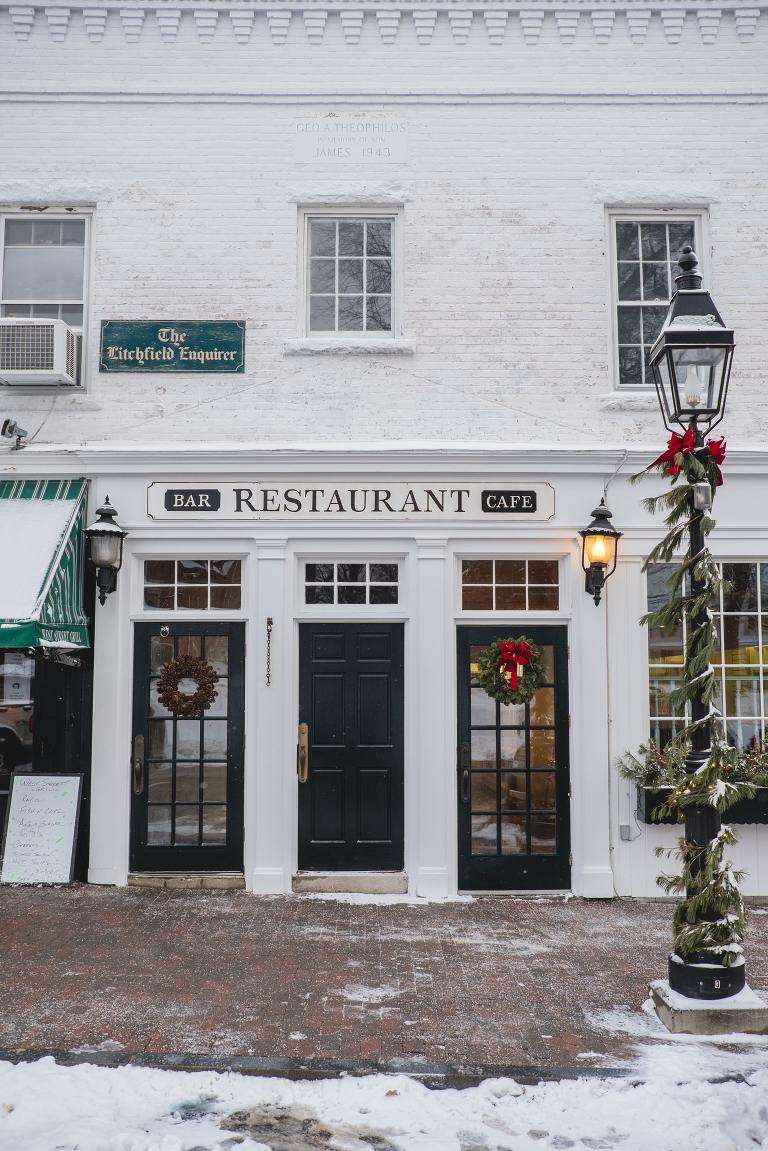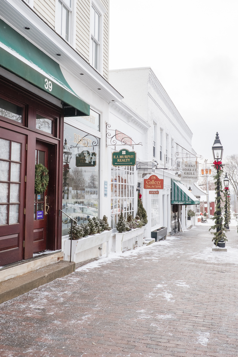 Litchfield is a magical town the whole year through, but I really do love it most in the snow. It is the quintessential New England town complete with a cute downtown, lovely winter decorations, and friendly people. This town reminds me of Cazenovia New York, the little village that I lived in during my college years and I truly miss it this time of year.