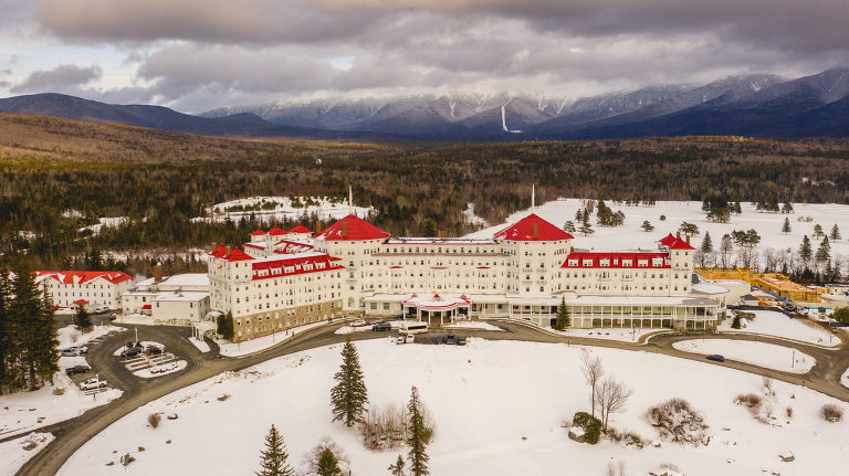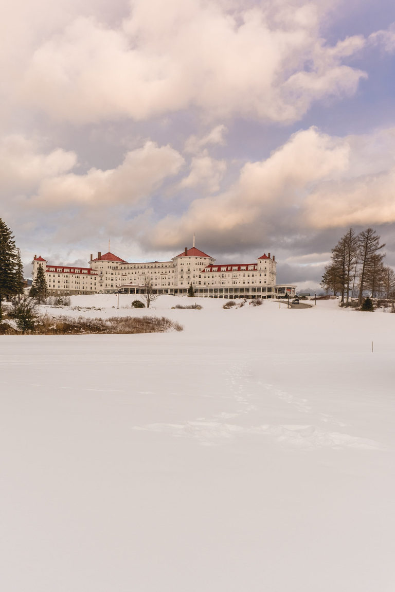 One of the silly things I wanted to do during this trip was make snow angels in front of the Omni Mount Washington Resort. This grand historic hotel has been on my list for a while. Coming around the corner, the view did not disappoint. Nestled between the mountains it looked like a fairytale. I felt like Amelia arriving in Genovia for the very first time in The Princess Diaries.