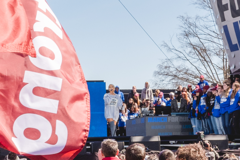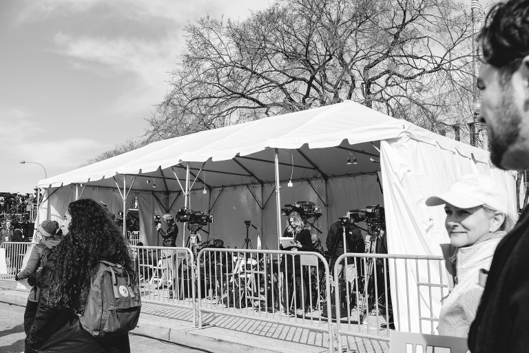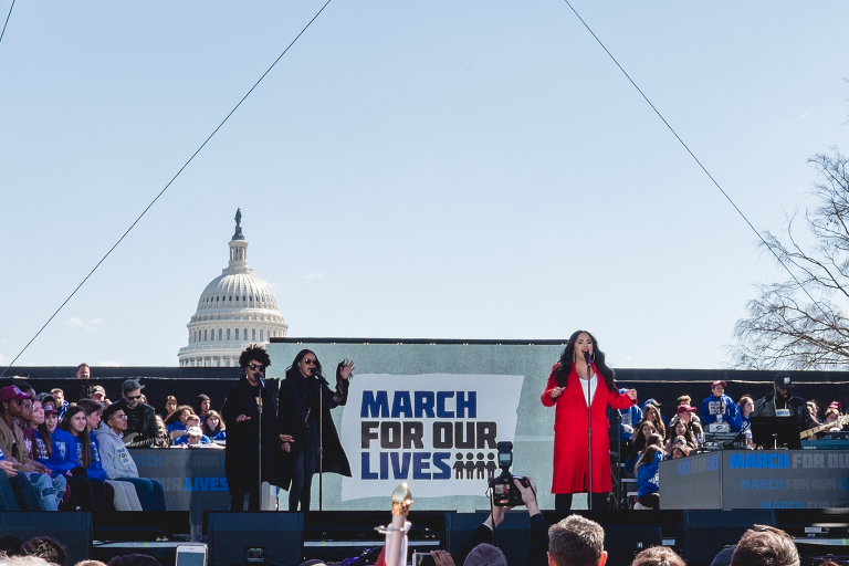 When we arrived we were ushered to a room to be given lunches and water for our day. These sweet kids were sitting at the podium. Outside before marching to the event, local news crews interviewed several of the students who had arrived on the buses with us. We were guided to a side entrance as people started to pour into Pennsylvania Avenue. Media crews were lined up for the event. We were guided right up to the front of the stage. It was an incredible experience to be so close. For the last march I attended, I came in through the back and made it almost a block away from the stage. It was amazing to be so close. At the same time, we had no idea how big the gathering was going to be because we could not see that far back from where we stood. It was an incredible feeling to be a part of history and to share the experience with my family. This was also Matthew’s first march! The streets began to fill with people. It was so tight that we stood shoulder to shoulder with our fellow marchers. Students from Parkland were standing with us along with students from Newtown, Columbine, and numerous other schools and communities impacted by these tragedies. A Parkland Student holds a sign before the rally begins. Never Again. Andra Day opened the rally with a song for hope. Many critics of the march brought up their distaste for performances at the march, but the emotional support of these artists brought hope and happiness to the children and the crowd during this serious event. These artists are in a position of power and influence, which they do not take for granted. Their support of these brave kids kept the message where it belonged and brought a sense of the innocence that the movement is working to protect. Marjory Stoneman Douglas High School student Cameron Kasky gave the opening speech. “Look around -We are the change.”His speech was followed by his classmate, Delaney Tarr.Demi Moore sang her song, “Skyscraper” as a message of hope for the crowd. Hamilton creator Lin-Manuel Miranda and performer Ben Platt sang “Found Tonight.”Student David Hogg gave a powerful speech as well. Dr. Martin Luther King Jr.’s granddaughter Yolanda Renee King lead the crowd into a chant. She told the crowd that her grandfather had a dream, but that she also had a dream. “My dream is, enough is enough.”