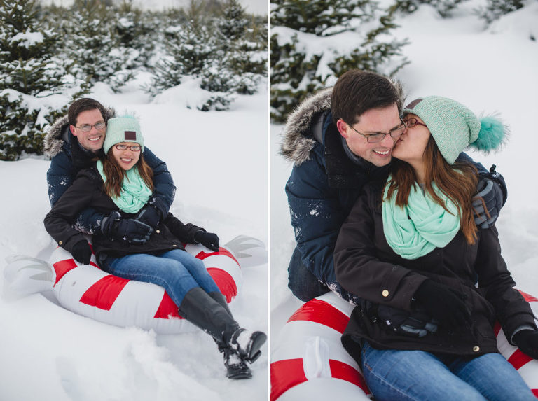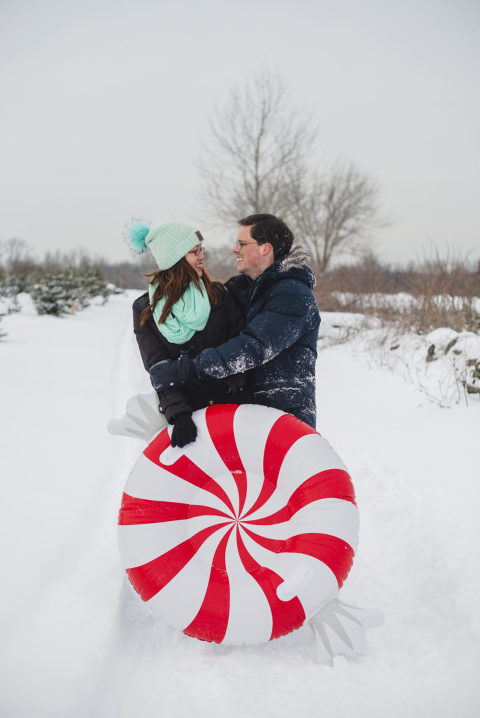 We photographed this engagement session at the Allen Hill Tree Farm in Brooklyn Connecticut. When we arrived the family who runs the farm was enjoying the gorgeous day on snowmobiles, tractors, and even snowshoes. We wanted a location with a gorgeous backdrop of snow and trees and we found it at this beautiful farm. We were asked, “Don’t you know you’re late for the season?” .jpg)