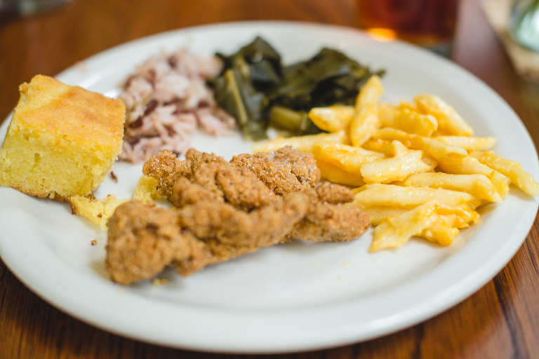 My first bite of catfish. We have catfish at home, especially large ones on the lake I grew up on, but up north we typically don’t eat them. In fact, I have never seen catfish on the menu. In was a good white fish and had a texture similar to alligator meat. Up north we also take the skin off, but this fish was friend skin and all. Overall, I give it a 6.5 as it was good and I would eat it again, but I wasn’t crazy about it. The homestyle mac n’ cheese and greens on the other hand, I could eat all day. Their fresh cornbread was also wonderful. I did go up for seconds. .jpg)